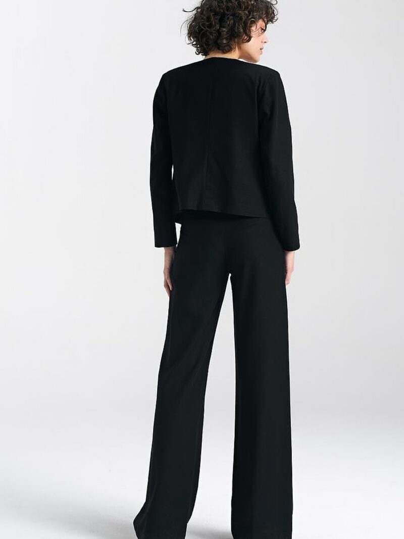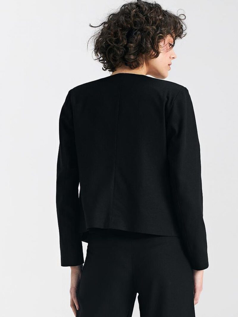 La veste à coupe régulière impressionne par son élégance et son style unique. Sa forme courte et carrée souligne la silhouette tout en ajoutant de la subtilité et de la sophistication à tout style. Fabriquée dans un tissu de haute qualité comprenant de la viscose, du lin et du coton, elle garantit non seulement une belle apparence, mais aussi un port confortable. La couleur de cette veste unique est un noir profond, qui peut être assorti à de nombreux styles. Cette veste n’a pas de fermeture traditionnelle, ce qui lui confère une touche de modernité et de légèreté. Les épaulettes ajoutent de la structure et de l’élégance, en accentuant délicatement la silhouette. En outre, la veste est dotée d’une doublure, qui assure non seulement le confort, mais aussi la durabilité et la solidité. C’est un choix idéal pour ceux qui apprécient un style sophistiqué et original et une confection de haute qualité.