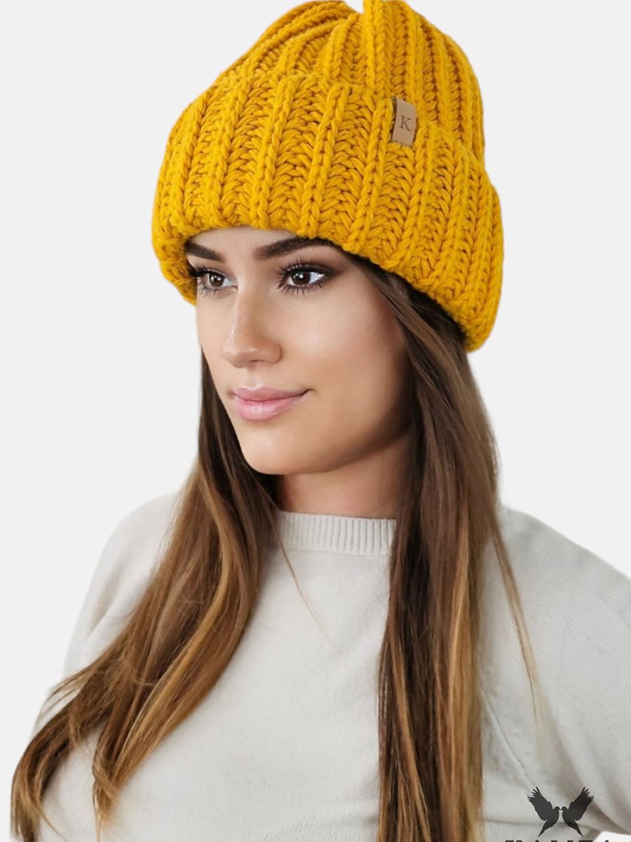 Bonnet tricot collection laine moutarde