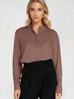 La chemise pour femme moderne de coupe oversize est un mรฉlange de libertรฉ et d’รฉlรฉgance. Fabriquรฉe en viscose lรฉgรจre et agrรฉable au toucher, elle assure un confort toute la journรฉe. Le modรจle a un col polo avec un col montant et des manches longues avec des poignets, ce qui lui donne un caractรจre classique. La chemise est boutonnรฉe jusqu’ร la moitiรฉ avec une patte de boutonnage cachรฉe, soulignant son style minimaliste et รฉlรฉgant. Grรขce ร sa coupe dรฉcontractรฉe, elle conviendra parfaitement aux tenues de tous les jours, de bureau et smart casual.