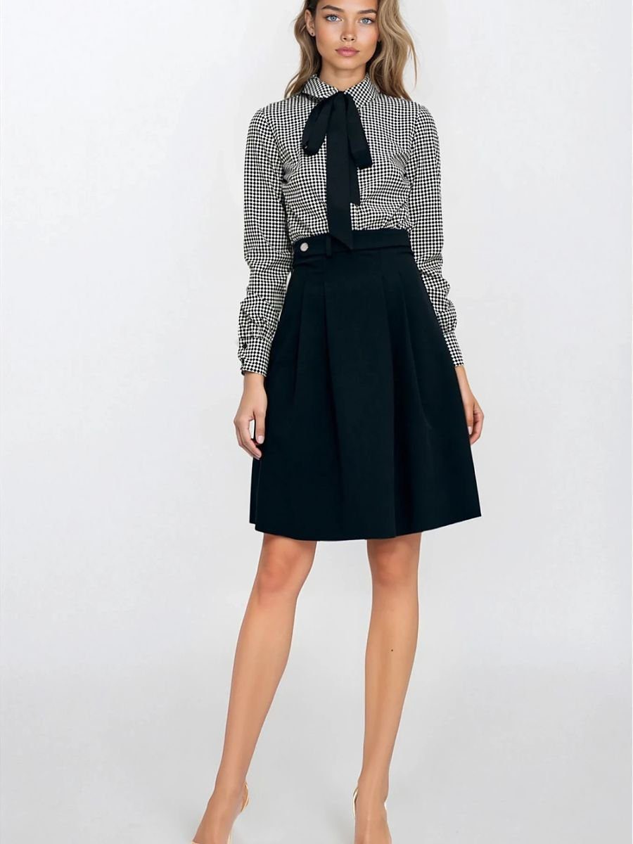 Chemise avec nœud est parfaite pour le travail. Grâce à l’ornement sous le cou, nous n’avons pas à nous soucier des détails. Associée à un pantalon classique ou à une jupe, vous créerez une tenue pour le bureau ou une réunion. Chemise légèrement cintrée avec l’imprimé le plus tendance de la saison!