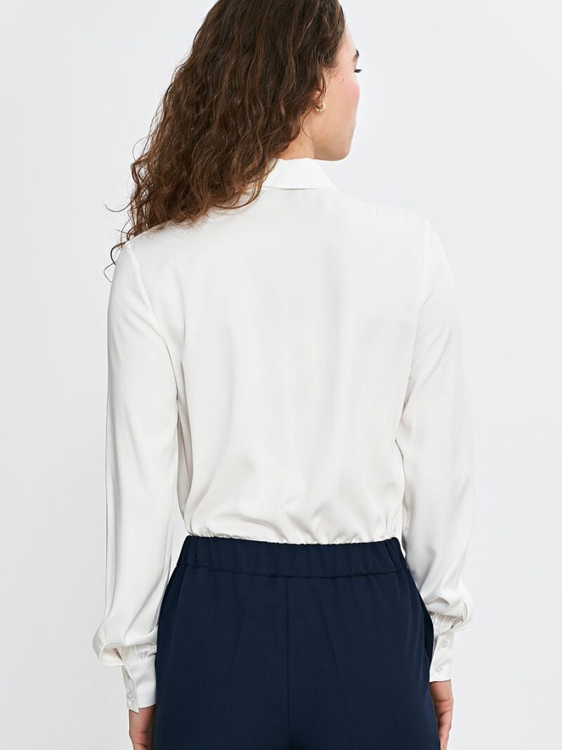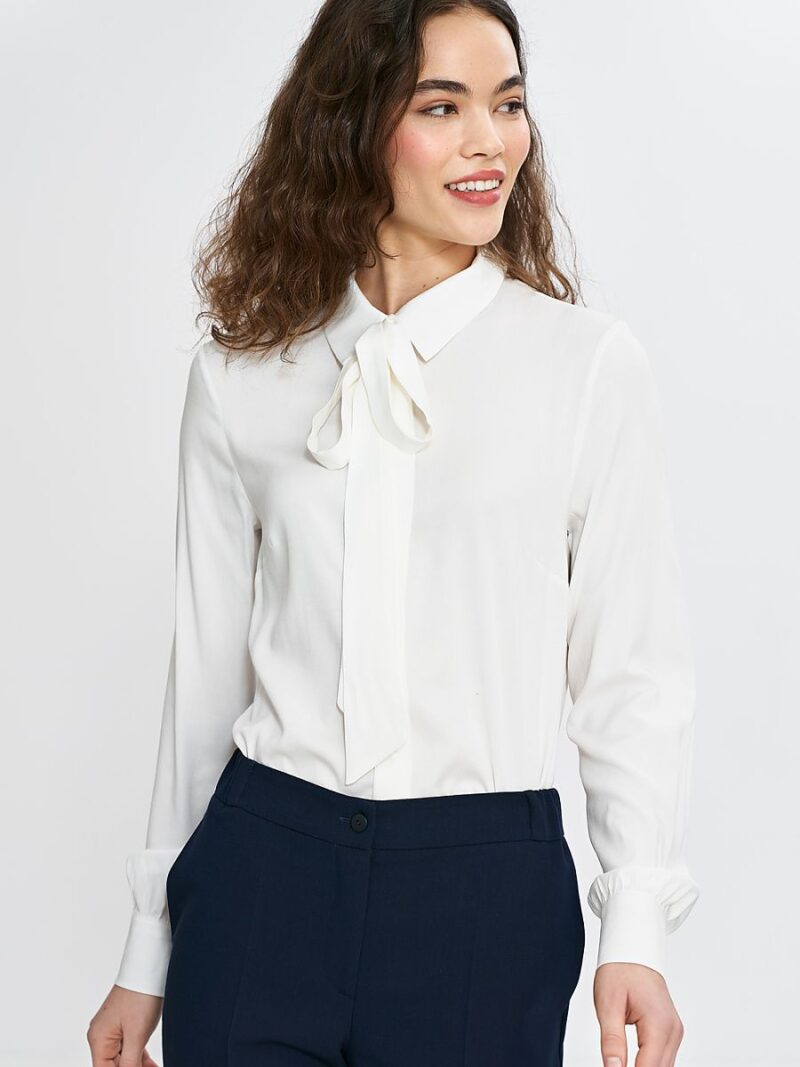 Une chemise รฉlรฉgante pour femme de coupe rรฉguliรจre, fabriquรฉe dans un matรฉriau viscose lรฉger et agrรฉable au toucher. Le col classique avec un foulard cousu en dessous lui donne un caractรจre subtilement fรฉminin mais aussi รฉlรฉgant. La longue manche terminรฉe par un poignet ajoute une touche formelle ร l’ensemble. La fermeture ร boutons sur le devant rend la chemise confortable et pratique. Parfait pour le bureau, les rรฉunions d’affaires et les sorties รฉlรฉgantes.