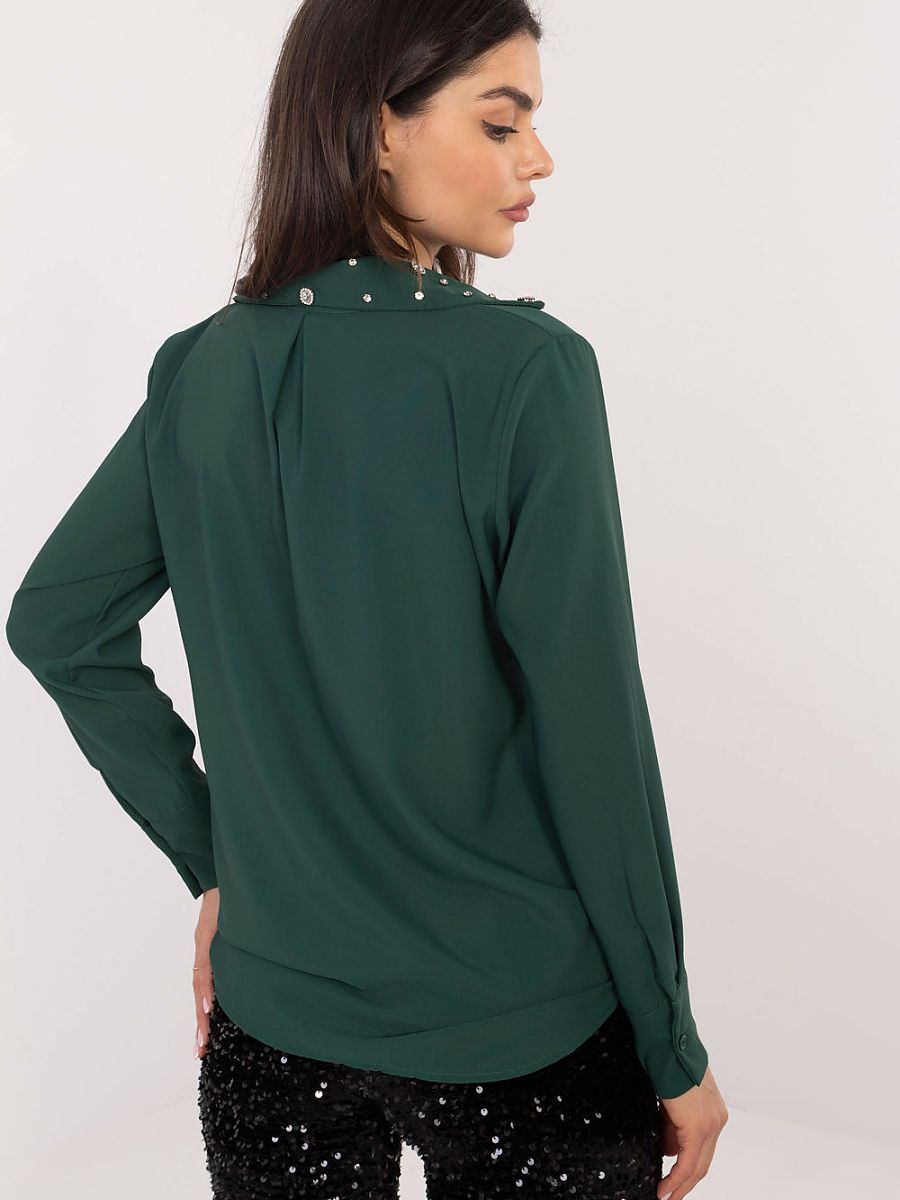 Chemise pour femme de coupe classique, idéale pour les occasions élégantes et pour les tenues de bureau au quotidien. Fabriquée à partir d’un mélange de polyester et de viscose, elle est confortable à porter et durable. Le tissu lisse lui confère une polyvalence, permettant un ajustement facile à différentes tenues et accessoires. Sa longueur standard et ses manches longues assurent confort et allure professionnelle. La chemise possède un col délicat orné de cristaux subtils, ce qui lui confère un caractère élégant et unique. Boutonnée avec des boutons classiques, c’est un excellent choix pour les sorties formelles ainsi que pour le travail quotidien, ajoutant du style et de la classe à chaque tenue.