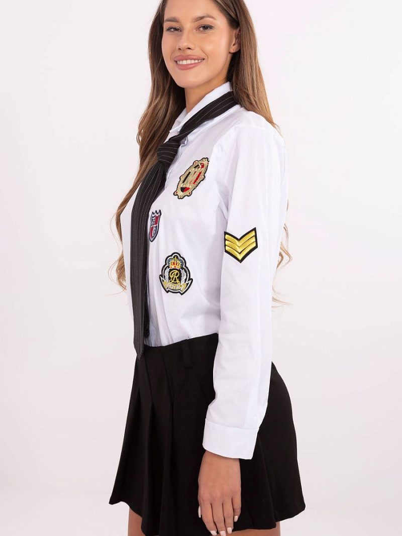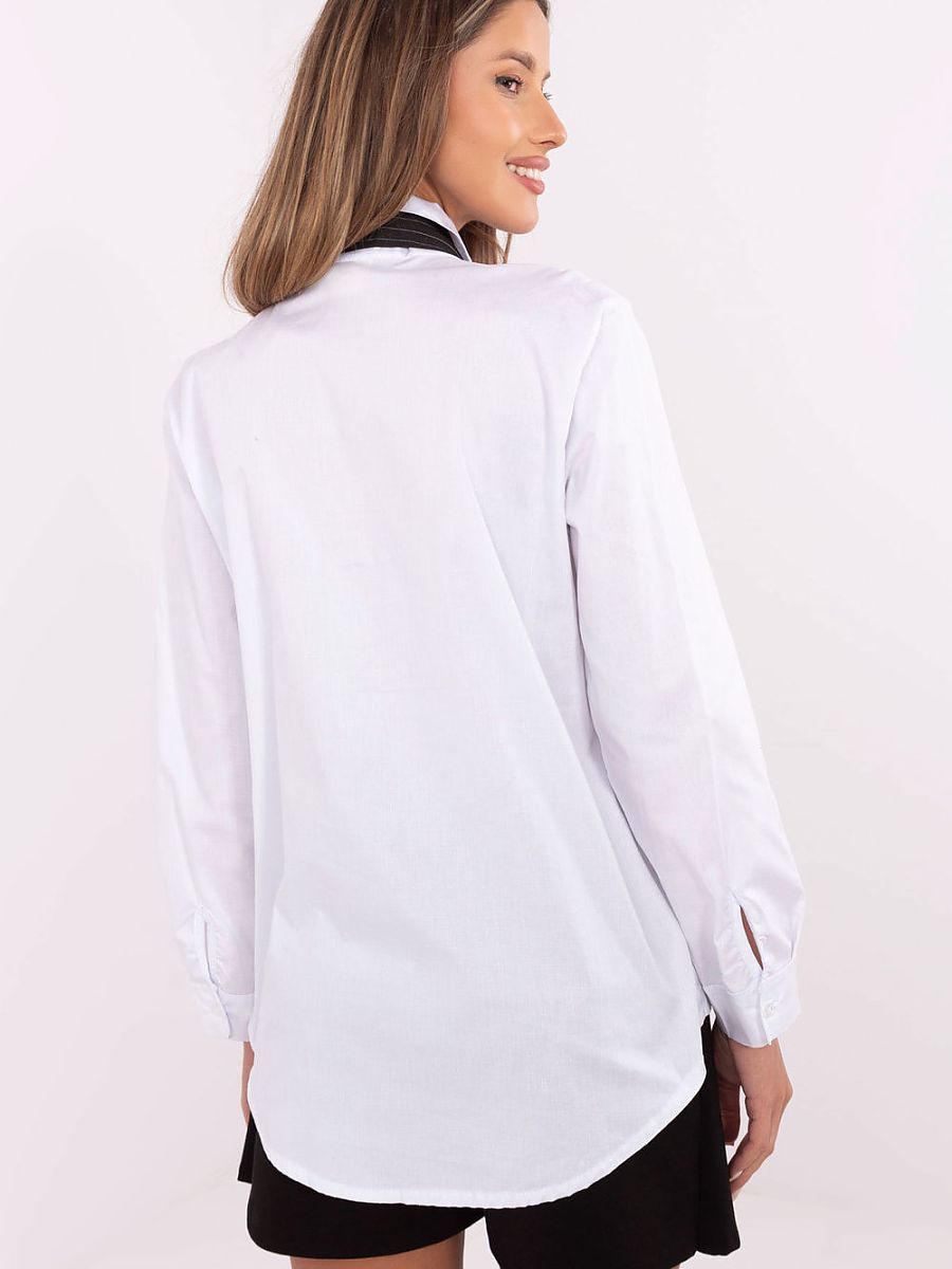 Cette élégante chemise pour femme aux détails originaux est le choix parfait pour les femmes qui apprécient le chic décontracté avec une touche d’originalité. Fabriquée à partir d’un mélange de coton et d’élasthanne de haute qualité, la chemise offre confort, souplesse et une excellente coupe. Sa longueur standard et son col classique en font une pièce polyvalente de la garde-robe. Le modèle boutonné se distingue par une cravate amovible, qui vous permet de personnaliser votre style, du plus formel au plus décontracté et au quotidien. Les patchs décoratifs placés sur le devant et sur les manches ajoutent du caractère et de l’expression à la mode, créant ainsi une esthétique unique. C’est la chemise idéale pour les sorties quotidiennes, pour le travail et pour les fêtes. Elle se marie parfaitement avec un jean, un pantalon en tissu ou une jupe, offrant de nombreuses possibilités de créer des ensembles élégants qui mettent en valeur votre personnalité et votre style individuel.