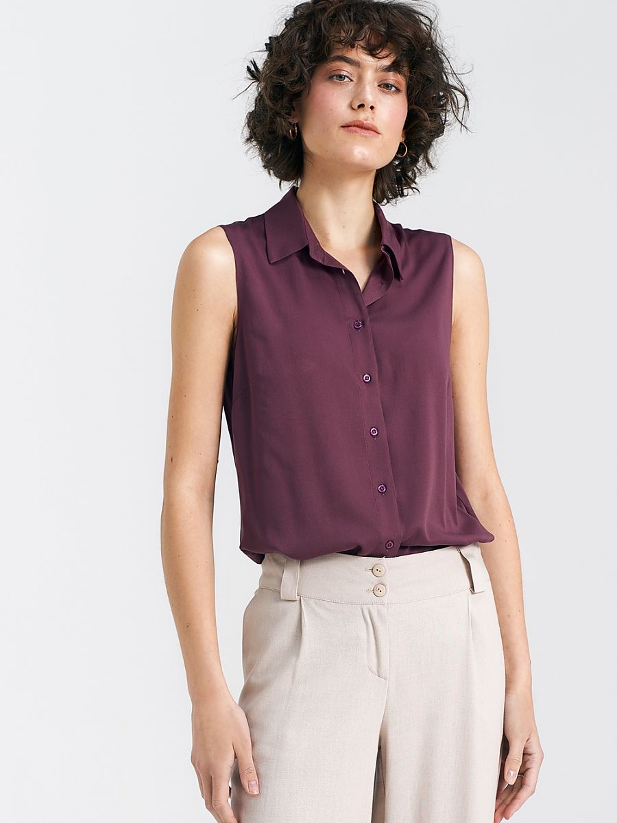 Chemisier sans manches classique bordeaux