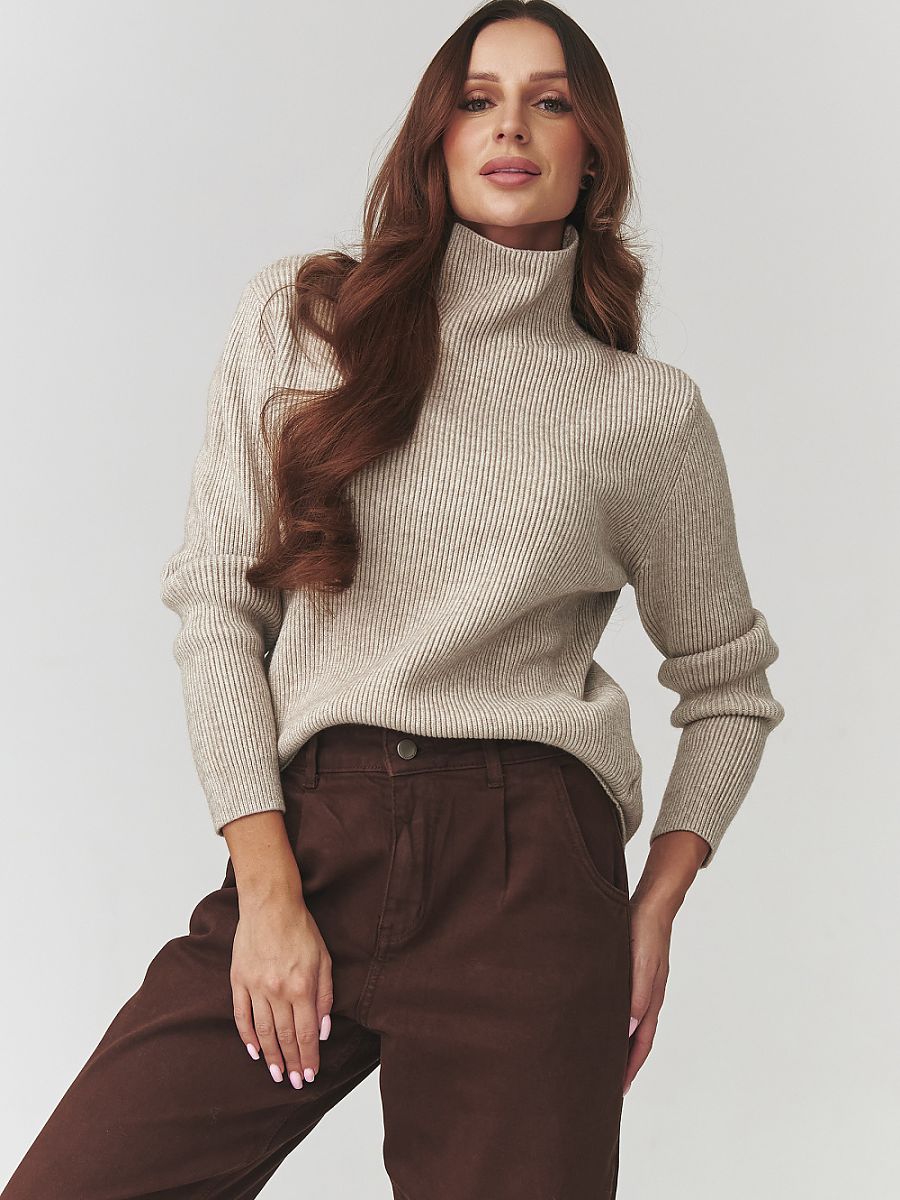 Choisissez l’élégance classique et le confort ! Ce pull pour femme avec col roulé est un incontournable dans toute garde-robe d’automne-hiver. Fabriqué dans un tricot doux et côtelé, il offre un grand confort et s’adapte parfaitement à la silhouette. Le pull a une coupe plus ample, ce qui le rend parfait aussi bien rentré dans un pantalon que porté par-dessus. Associez-le à votre jean préféré ou à des pantalons élégants. Avec un pantalon taille haute, il créera un look moderne et minimaliste dans un style smart casual.