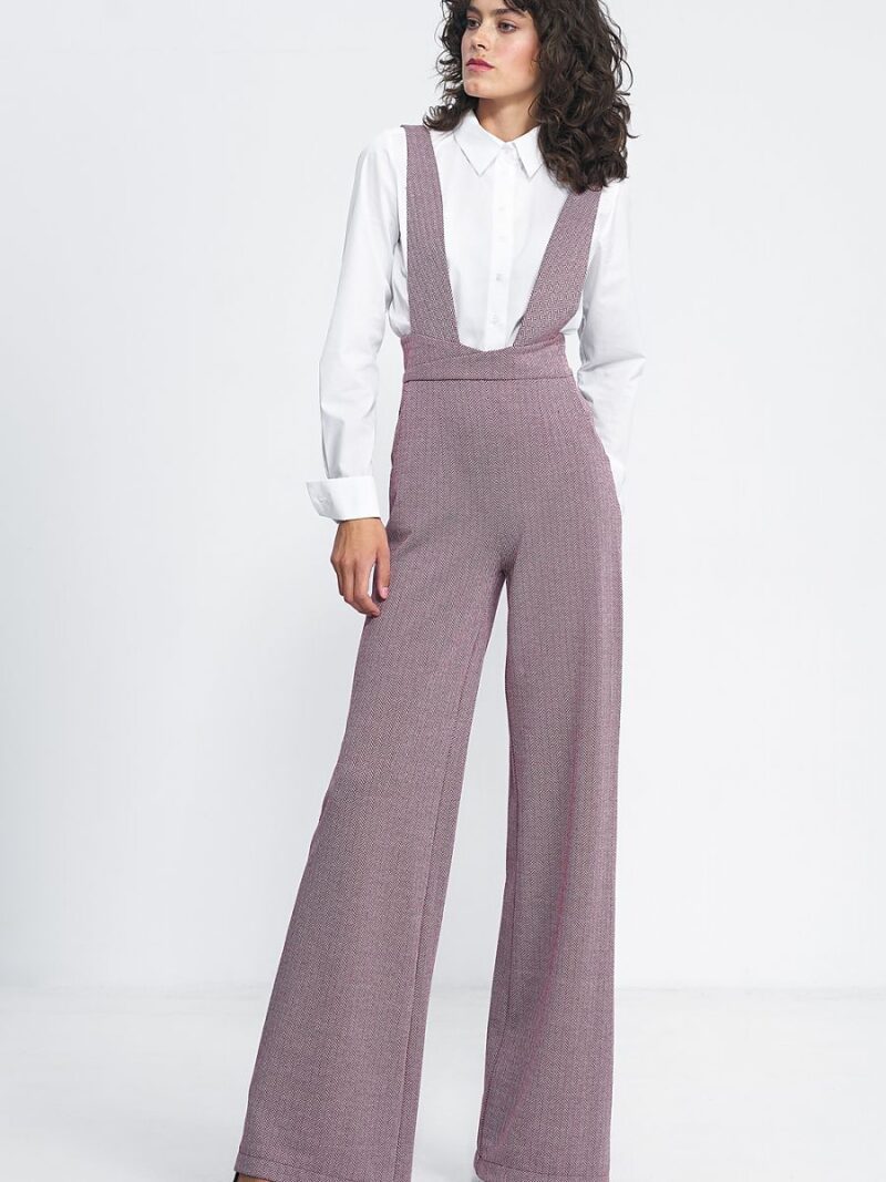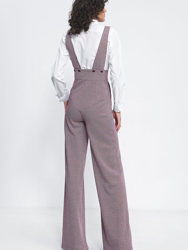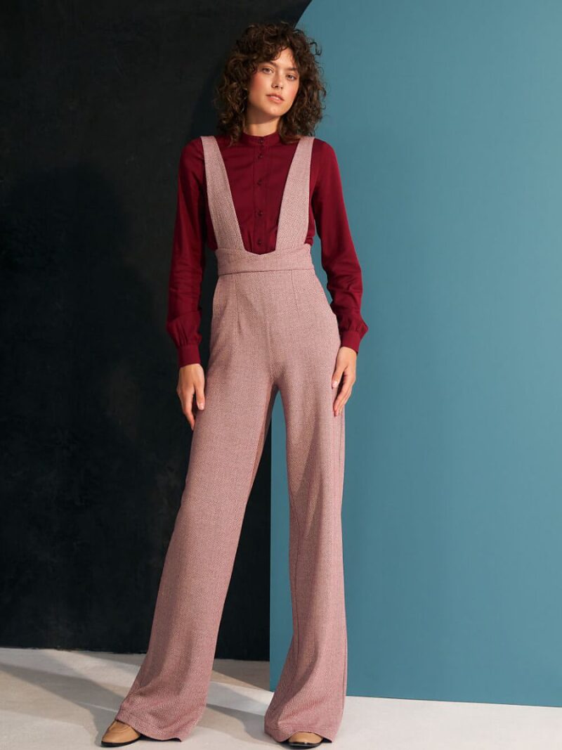Incontournable de la saison ! La combinaison unique à taille haute avec bretelles est un succès absolu de la collection ! Une coupe inspirée de la mode des décennies précédentes a été associée à un mélange de tissus modernes et à un motif universel. Le modèle a des jambes larges et des poches pratiques. Les bretelles se ferment dans le dos à l’aide de deux boutons sur l’une des bretelles.