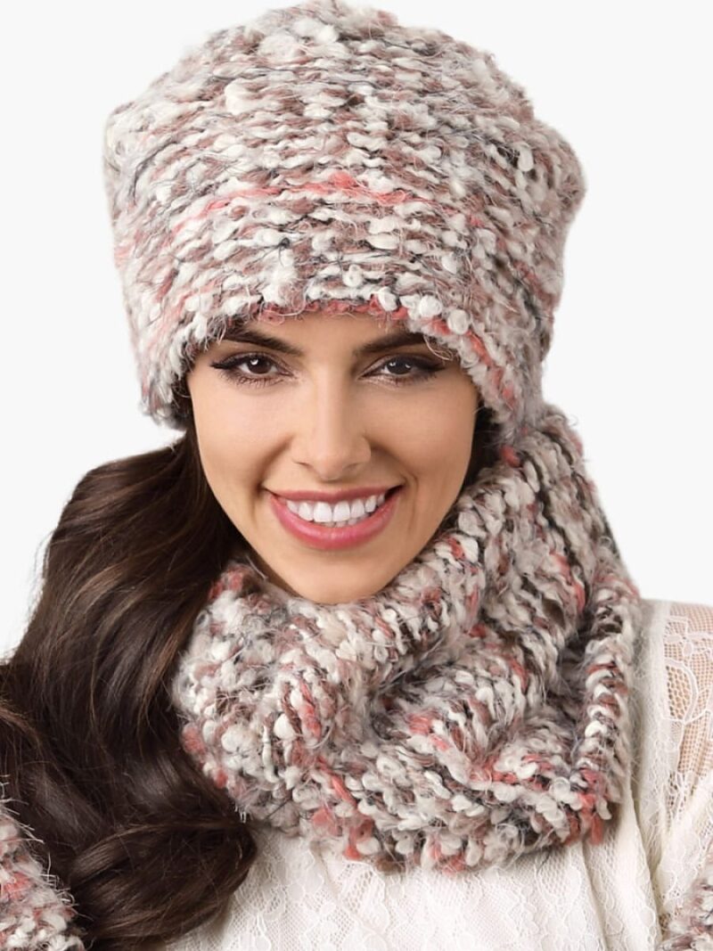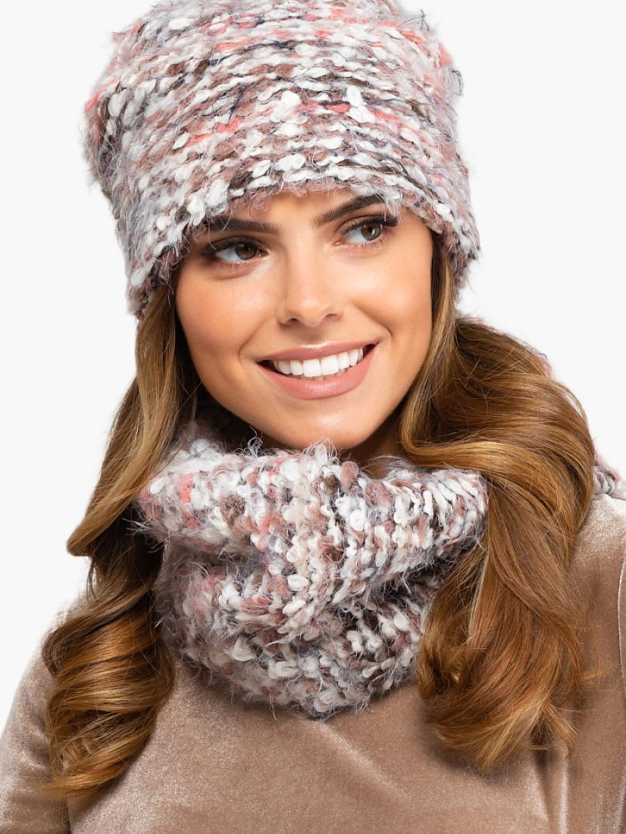 L’ensemble CARINI en couleur beige se compose d’un bonnet et d’un snood qui se complètent parfaitement. Fabriqués en tricot bouclé de haute qualité et doublés de polaire chaude, ils offrent non seulement élégance, mais aussi confort et chaleur pendant les journées froides. De belles combinaisons de couleurs et une structure fantastique font de l’ensemble CARINI un choix distingué parmi les autres propositions sur le marché. Une excellente option pour la période automne-hiver, garantissant confort et style. Produit fabriqué en Pologne, garantissant une haute qualité de fabrication.