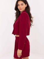 Ensemble élégant pour femme composé d’une veste courte et d’une jupe-pantalon, parfait pour les sorties quotidiennes, le travail et les réunions. La veste avec revers, boutonnée, avec des épaulettes. La jupe-pantalon a un devant plissé et des shorts cousus à l’intérieur, assurant confort et liberté de mouvement, ainsi qu’une bande élastique cousue à l’arrière pour un meilleur ajustement. Fabriqué dans un mélange de polyester et d’élasthanne, avec un motif lisse, l’ensemble allie élégance et confort. Les manches longues de la veste et la mini longueur de la jupe-pantalon donnent à la tenue un caractère moderne et féminin. C’est un ensemble qui associe élégance, fonctionnalité et confort, parfait pour de nombreuses tenues quotidiennes et élégantes.