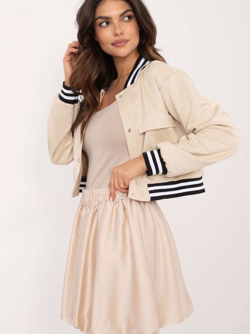 La mini-jupe bombardier est idéale pour un style décontracté de tous les jours avec une touche d’élégance. Fabriquée dans un tissu subtilement brillant, elle ajoute une touche chic à n’importe quelle tenue tout en restant légère et confortable. La doublure en viscose assure un ajustement confortable, tandis que la texture lisse du tissu confère à la jupe une touche minimaliste et moderne. Grâce à la ceinture élastique, le modèle s’adapte parfaitement à la silhouette, garantissant un confort tout au long de la journée. La coupe courte mini met en valeur les jambes, et l’absence de fermeture rend la jupe facile à enfiler et à porter. Parfaite au quotidien avec un chemisier ou un pull.