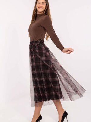 Jupe légère et évasée pour fille est le choix idéal pour tous les jours. Fabriquée dans un mélange agréable au toucher de polyester, d’élasthanne et de viscose, elle assure un confort de port et une liberté de mouvement. Une bande élastique est cousue à la taille, s’adaptant à la silhouette et mettant en valeur la taille. Un accent supplémentaire est ajouté par une broderie décorative placée à l’avant de l’élastique. Le modèle se compose de deux volants, qui ajoutent légèreté et charme subtil à l’ensemble. Le motif lisse et la coupe universelle font que la jupe se marie parfaitement aussi bien avec des T-shirts basiques qu’avec des blouses plus élégantes. Une excellente proposition pour des tenues décontractées au quotidien.