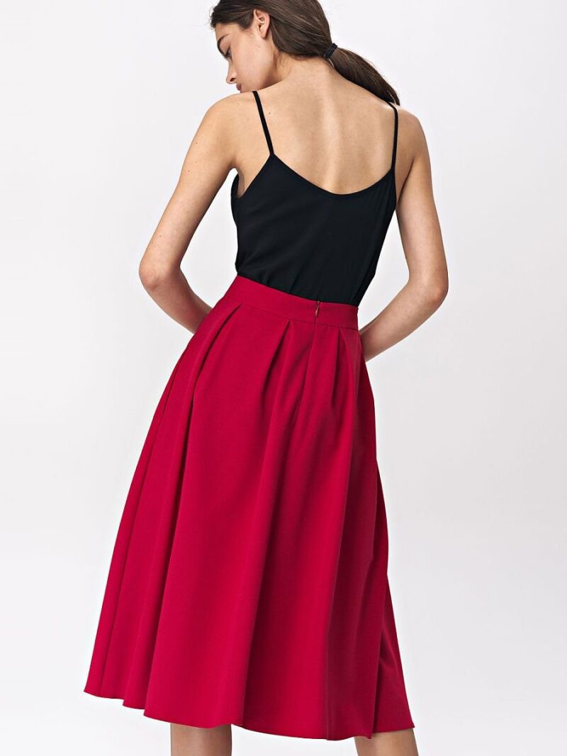Une jupe midi rouge évasée est un excellent élément d’un look de bureau doux et affirmé. Associée à une chemise élégante, elle peut être une alternative spectaculaire aux tenues de bureau classiques, et en duo avec un haut à bretelles, elle crée une tenue décontractée féminine. Le tissu agréable au toucher, avec une touche de viscose, assure un grand confort de port.