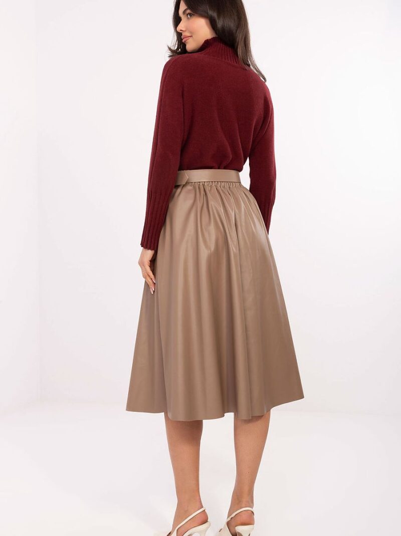 Jupe élégante en simili cuir de haute qualité est le choix idéal pour les femmes qui apprécient l’élégance et le confort. Le modèle de longueur midi met parfaitement en valeur la silhouette, et la texture lisse du matériau confère à l’ensemble un caractère classique et intemporel. Une bande élastique cousue à l’arrière de la taille assure un ajustement parfait et un confort de port, tandis que la ceinture fermée souligne subtilement la taille. L’absence de fermeture rend la jupe extrêmement confortable à enfiler et à porter. Fabriquée à partir d’un mélange de polyester et de polyuréthane, elle garantit la durabilité et un aspect élégant rappelant le cuir naturel. Ce modèle conviendra parfaitement au quotidien et au travail, créant des tenues élégantes avec une chemise, un pull ou une veste ajustée.