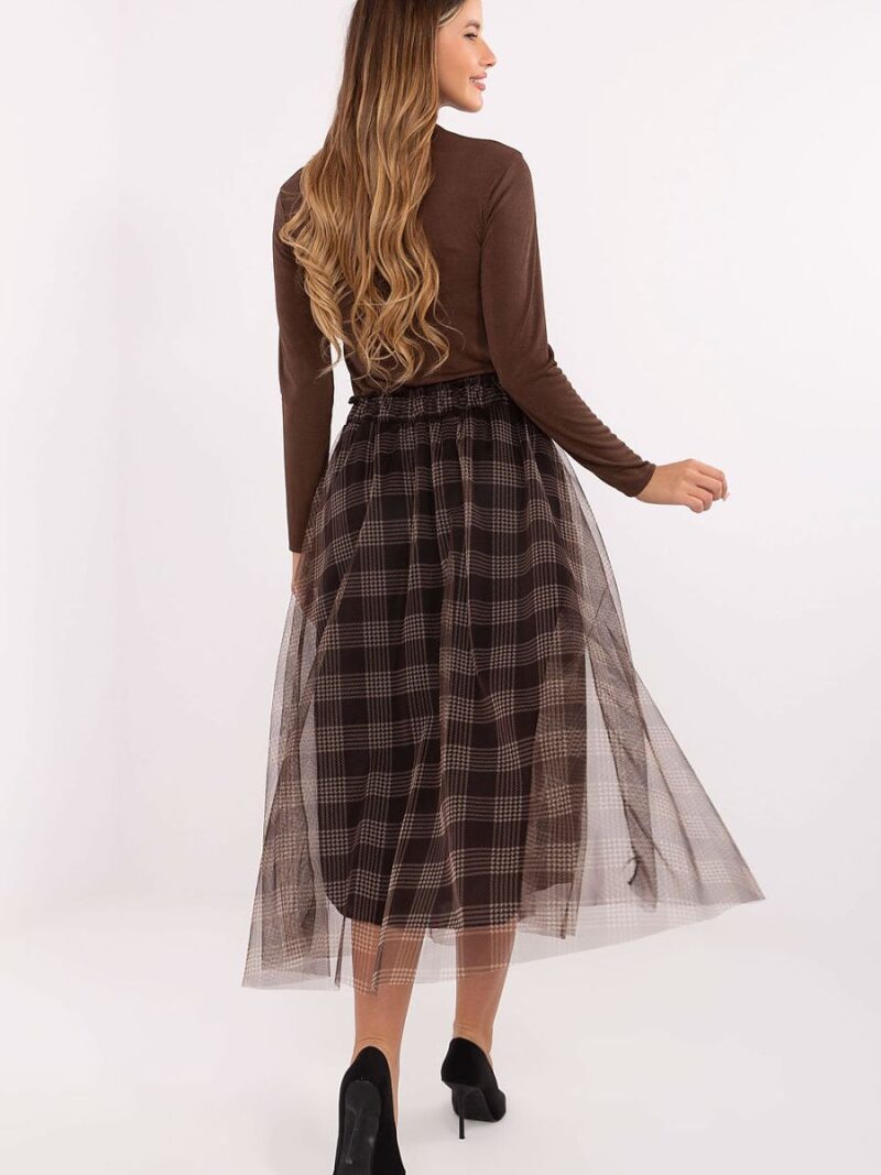 La jupe en tulle élégante et évasée est un mélange d’élégance et de charme féminin. Fabriquée à partir d’un mélange de polyester et d’élasthanne de haute qualité, elle est légère, durable et confortable à porter. Le modèle est doublé, ce qui lui permet de bien se draper et assure un confort optimal. Le motif à carreaux confère à la jupe un caractère intemporel, tandis que la délicate couche de tulle lui donne légèreté et une touche de romantisme subtil. Dotée d’une taille élastique, elle est facile à enfiler et s’ajuste parfaitement à la silhouette. La jupe midi conviendra parfaitement aux tenues élégantes et de soirée, ainsi qu’aux tenues plus décontractées ou de bureau. C’est le choix idéal pour les femmes qui apprécient le style, le confort et l’originalité.