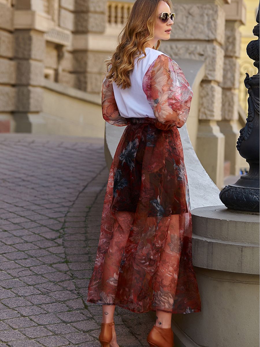 Une jupe en tulle de longueur maxi avec un demi-jupon court en viscose est un choix parfait pour les femmes qui aiment mettre en valeur leur féminité. La jupe est parfaite accompagnée d’un pull ample pour dames, ainsi que d’un haut classique uni. Il peut également être porté avec une blouse en coton à manches bouffantes et un tulle assorti sur la jupe. Grâce aux imprimés floraux, la jupe est très romantique et printanière. Il se compose de deux couches : une demi-jupe en viscose et une couche supérieure de tulle floral transparent. Une épaisse ceinture fixée à la taille permet à la jupe de s’adapter parfaitement, soulignant la partie la plus étroite du corps. Le tulle long, associé à un slip court couvrant, façonne parfaitement la silhouette, masquant toutes les imperfections, le plus souvent visibles sur les cuisses. La jupe bohème est un succès absolu de ces derniers mois. Tous les accessoires tels que des bottes d’été, une cape en crochet ou un grand chapeau sont les bienvenus ici. C’est la jupe parfaite pour les amateurs de tenues créatives et intemporelles.