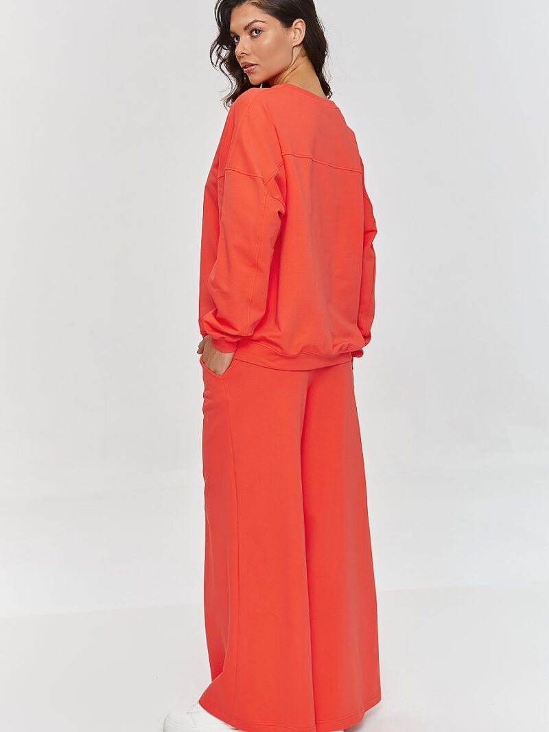 Ce survêtement est le choix idéal pour les femmes qui apprécient la fonctionnalité et le style. L’ensemble se compose d’un sweat oversize à manches longues et d’un pantalon ample, créant un look confortable mais stylé. Grâce à sa coupe large, le pantalon offre une grande liberté de mouvement, tandis que la ceinture élastique s’adapte à la silhouette. De plus, il s’élargit vers le bas, donnant à l’ensemble un caractère unique et dynamique. Le sweat avec son col rond classique et ses manches côtelées complète l’ensemble, créant un look confortable et intéressant. Le survêtement est fabriqué dans un matériau doux et agréable au toucher, garantissant un confort au quotidien. Grâce à sa coupe simple mais élégante, l’ensemble convient parfaitement à différentes occasions. Notre survêtement est un choix qui allie décontraction, fonctionnalité et look moderne. Il convient aussi bien pour se détendre à la maison que pour des rencontres entre amis, faire des achats ou au quotidien. L’ensemble se marie parfaitement avec vos baskets préférées, créant une tenue stylée, confortable et à la mode.