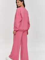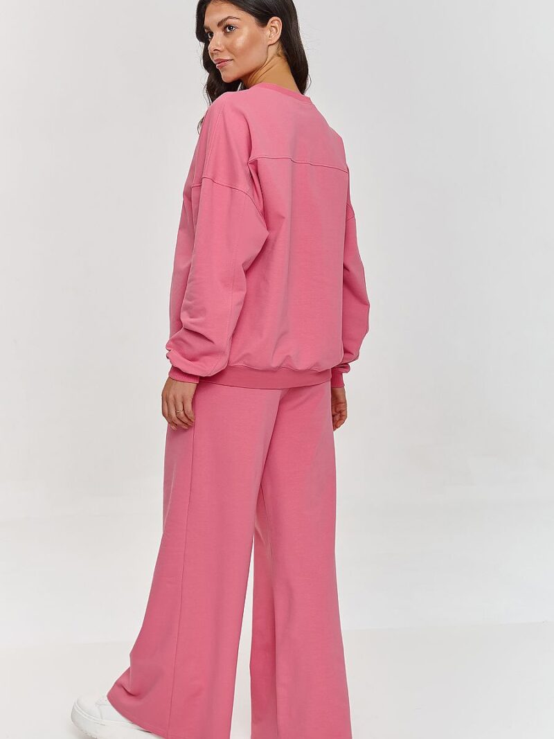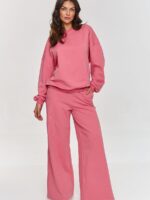 Ce survêtement est le choix idéal pour les femmes qui apprécient la fonctionnalité et le style. L’ensemble se compose d’un sweat oversize à manches longues et d’un pantalon ample, créant un ensemble confortable mais stylé. Grâce à sa coupe large, le pantalon offre une grande liberté de mouvement, et la taille élastique s’adapte à la silhouette. De plus, il s’élargit vers le bas, donnant à l’ensemble un caractère unique et dynamique. Le sweat avec son col rond classique et ses manches à bord-côte complète l’ensemble, créant un ensemble confortable et intéressant. Le survêtement est fabriqué dans un matériau doux et agréable au toucher, assurant un confort au quotidien. Grâce à sa coupe simple mais élégante, l’ensemble convient parfaitement à différentes occasions. Notre survêtement est un choix qui allie décontraction, fonctionnalité et look moderne. Il convient aussi bien pour se détendre à la maison que pour des rencontres entre amis, faire du shopping ou au quotidien. L’ensemble se marie parfaitement avec des baskets préférées, créant une tenue stylée, confortable et à la mode.