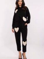 Ensemble décontracté pour femme, composé d’un survêtement alliant confort et look tendance. Fabriqué dans un mélange doux de viscose, coton et élasthanne, il assure un confort toute la journée. Le tissu lisse lui donne un caractère universel, tandis que les appliqués en forme de cœur sur le sweat et le pantalon ajoutent une élégance subtile et féminine. Le sweat à capuche à manches longues est parfait pour les journées plus fraîches. Les pantalons à coupe droite avec une taille haute et des poches latérales insérées garantissent confort et liberté de mouvement. C’est le choix idéal pour les tenues du quotidien, parfait aussi bien pour une balade que pour se détendre à la maison.