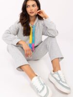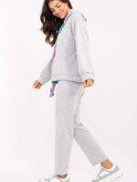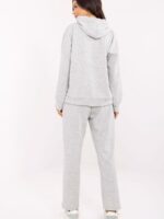 Ensemble de survêtement décontracté est le choix idéal pour tous les jours, alliant confort et look à la mode. Fabriqué à partir d’un mélange de polyester, viscose et élasthanne de haute qualité, il assure un confort de port et une liberté de mouvement. Le sweat à manches longues est doté d’une capuche pratique avec des cordons de serrage, ce qui lui confère un caractère sportif. Le pantalon à coupe droite et à longues jambes a une taille haute et des poches latérales insérées, et un cordon supplémentaire à la taille permet un ajustement parfait. Le motif gris chiné rend l’ensemble polyvalent et se marie parfaitement avec différents accessoires. Une excellente option pour des looks quotidiens lors de promenades, de courses ou de détente à la maison.