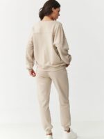 Un ensemble de survêtement élégant pour femmes qui allie design moderne et confort exceptionnel. Fabriqué en tissu de haute qualité composé de 95 % de coton et 5 % d’élasthanne, il assure douceur, élasticité et un ajustement parfait à la silhouette. C’est un excellent choix pour tous les jours, parfait à la maison, lors de promenades, de courses ou de détente le week-end. L’élément distinctif de cet ensemble est l’application brodée du logo de la marque sur le devant du sweat, qui lui donne un caractère original et une expression mode. Le sweat a une coupe décontractée avec une ligne d’épaules abaissée et est terminé par des poignets confortables aux manches et en bas, ce qui lui confère un style décontracté. L’encolure ronde est également finie avec un subtil bord-côte soulignant sa intemporalité. Le pantalon est doté d’une taille élastique et de poignets aux chevilles, ce qui lui permet de bien se poser sur la silhouette et garantit confort toute la journée. Cet ensemble est un mélange parfait de fonctionnalité et de style. Il convient aussi bien comme ensemble que porté séparément. Sa coupe universelle s’adapte à de nombreuses occasions et garantit une liberté de mouvement sans compromis. Misez sur la qualité, le confort et le détail mode en choisissant un survêtement avec une application brodée qui soulignera votre style chaque jour!