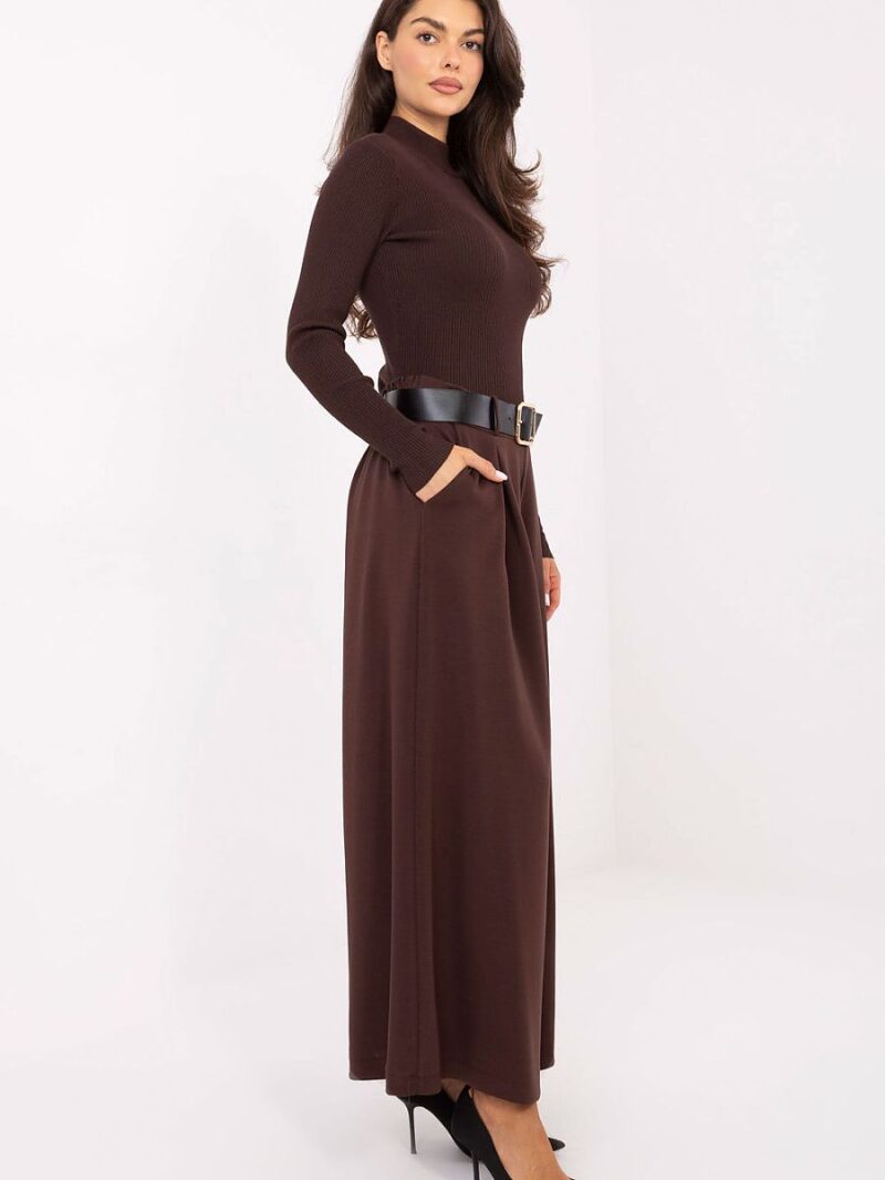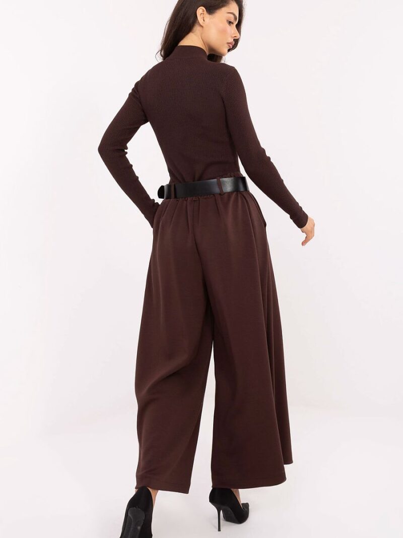 Des pantalons élégants pour femmes de type palazzo, parfaits pour la vie quotidienne et le travail. Fabriqués à partir d’un mélange de viscose et de polyester, ils se distinguent par leur structure lisse et leur confort de port. La taille haute avec une bande élastique et une ceinture fermée met en valeur la taille, et les plis décoratifs ajoutent de l’élégance à l’ensemble. Les larges jambes donnent de la légèreté à la silhouette, et les poches latérales pratiques garantissent la fonctionnalité. Une proposition élégante qui allie élégance et confort.