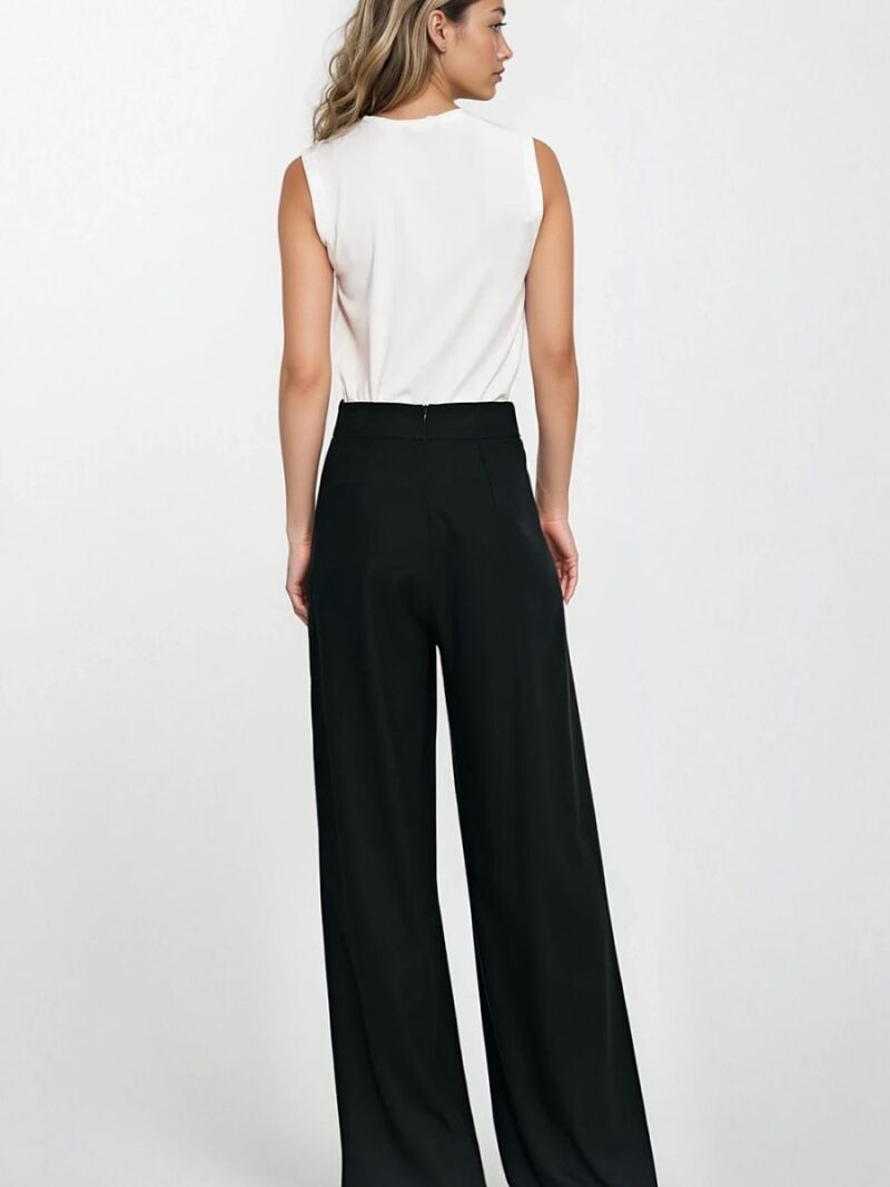 Pantalon de femme de coupe régulière, fabriqué à partir d’un tissu à la texture de lin, mélange de rayonne avec ajout de lin, qui assure légèreté et confort de port. Le modèle à taille haute souligne joliment la taille, et les plis décoratifs à l’avant ajoutent de l’élégance et une structure délicate. Les longues jambes larges de type palazzo créent une silhouette spectaculaire et se placent librement dans le mouvement. À l’arrière, il y a une fermeture à glissière discrète, garantissant une finition esthétique et une facilité d’enfilage. Parfait pour les tenues de tous les jours et les occasions plus formelles.