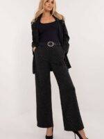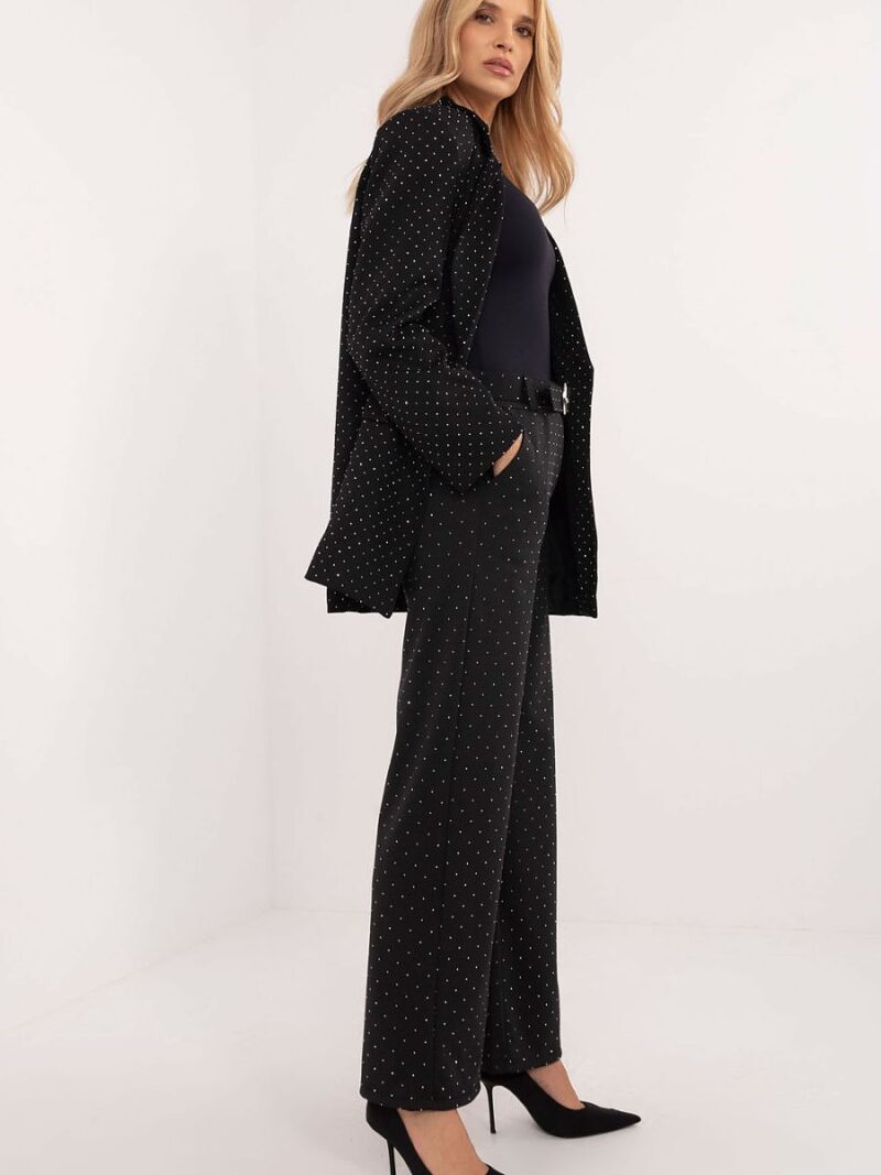 Pantalon en tissu pour femme à pois strassés brillants qui allie parfaitement l’élégance et le style moderne, idéal pour les fêtes et les occasions formelles. Fabriqué principalement en viscose, ce pantalon est léger et aéré, ce qui permet de le porter confortablement tout au long de la journée. Grâce à sa taille haute, il accentue la taille et donne à la silhouette une allure élégante. Les jambes larges ajoutent à son caractère décontracté, créant une coupe tendance et décontractée. Le pantalon n’a pas de fermeture, ce qui le rend facile à enfiler, tandis que les poches latérales sont pratiques pour un usage quotidien. De plus, la ceinture à boucle permet un ajustement parfait, ce qui fait de ce pantalon le choix idéal pour les femmes qui veulent être élégantes à n’importe quel événement.