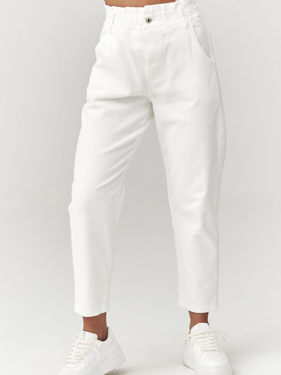Pantalons en velours côtelé élégants pour femmes, avec une coupe moderne et simple, sont le choix idéal pour les femmes qui apprécient le confort et le style intemporel. Fabriqués en velours côtelé doux et agréable au toucher, ils s’ajustent magnifiquement à la silhouette et offrent un confort toute la journée. Le modèle à taille haute souligne la taille et allonge optiquement les jambes, tandis que la jambe légèrement raccourcie donne un caractère moderne à l’ensemble. Les pantalons se marient parfaitement aussi bien dans des tenues quotidiennes avec des baskets que dans des ensembles plus élégants avec des bottines ou des mocassins. Fabriqué en Italie.