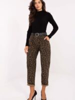 Pantalons pour femmes en tissu style décontracté, parfaits pour tous les jours. Fabriqués à partir d’un mélange de viscose, polyester et élasthanne, alliant confort, élasticité et durabilité. Modèle à taille haute, jambes fuselées et élastique à la taille pour un confort optimal, avec une ceinture amovible pour souligner la taille. Poches latérales et motif animalier à travers tout le tissu donnent aux pantalons un caractère moderne et marqué.