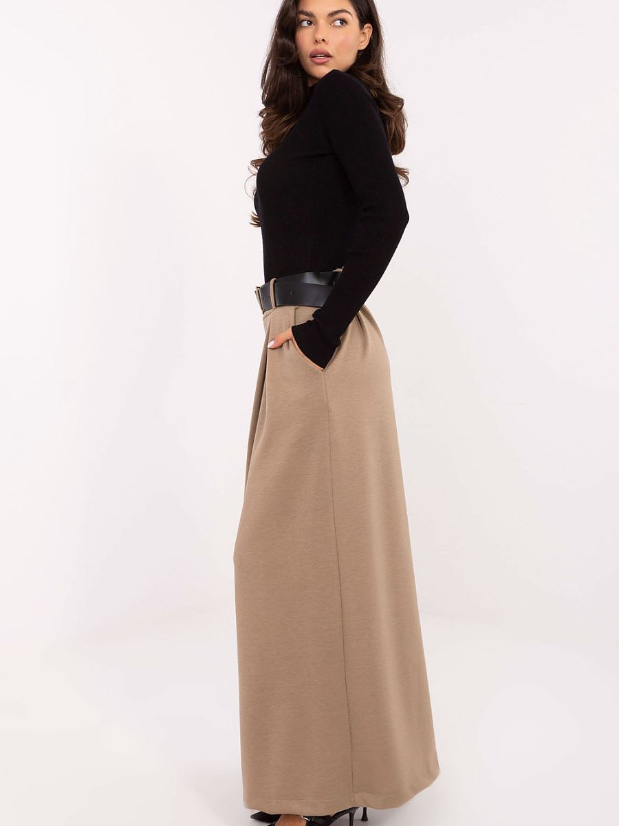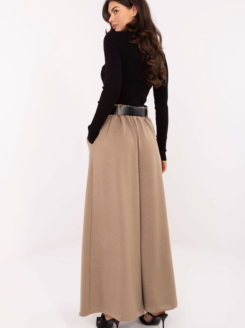 Pantalons pour femmes élégants de type palazzo, parfaits pour tous les jours et pour le travail. Fabriqués à partir d’un mélange de viscose et de polyester, ils se distinguent par leur structure lisse et leur confort de port. La taille haute avec une bande élastique et une ceinture boutonnée souligne la taille, et les plis décoratifs ajoutent de l’élégance à l’ensemble. Les jambes larges donnent de la légèreté à la silhouette, et les poches latérales pratiques et insérées assurent la fonctionnalité. C’est une proposition élégante qui allie élégance et confort.