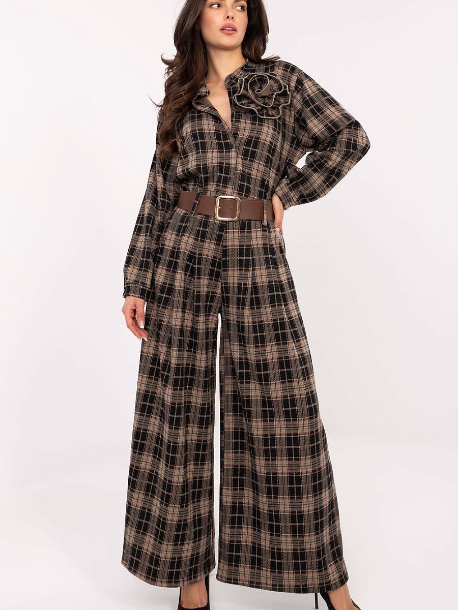 Des pantalons pour femmes en flanelle de style palazzo modernes et confortables, au caractère décontracté, parfaits pour les tenues quotidiennes. Fabriqués à partir d’un mélange de polyester, de viscose et d’élasthanne de haute qualité, ils offrent confort, légèreté et une légère élasticité, s’adaptant parfaitement à la silhouette. Le modèle a une taille haute et des jambes larges de type palazzo, qui allongent visuellement les jambes et donnent de la légèreté à la silhouette. Les poches latérales insérées et la ceinture ajustable ajoutent de la praticité et permettent de souligner la taille. Les pantalons ont un motif à carreaux qui apporte une touche classique et intemporelle, et l’absence de fermeture les rend incroyablement confortables et faciles à porter. C’est un modèle polyvalent qui conviendra parfaitement aussi bien aux tenues décontractées quotidiennes qu’aux tenues plus élégantes pour le travail.