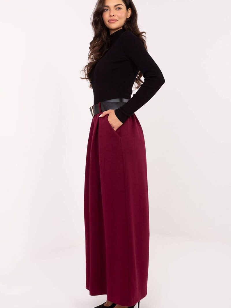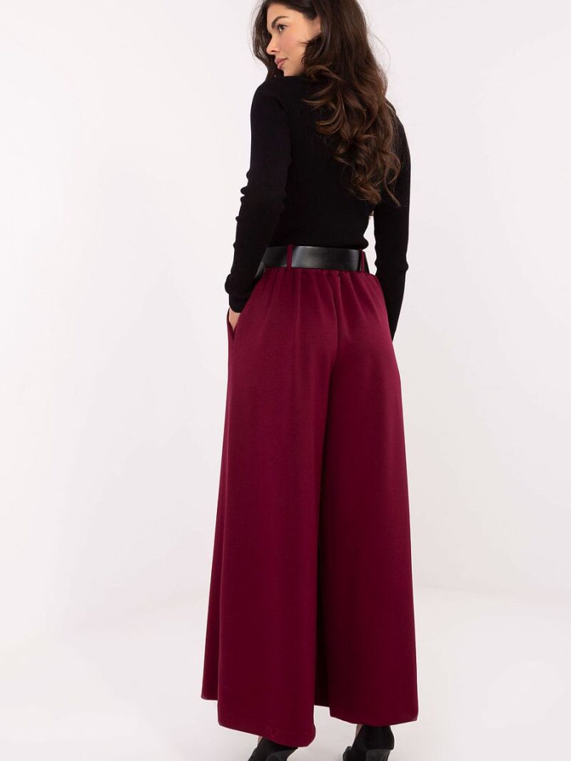 Pantalons élégants pour femmes de type palazzo, parfaits pour tous les jours et le travail. Fabriqués à partir d’un mélange de viscose et de polyester, ils se distinguent par leur texture lisse et leur confort de port. La taille haute avec une bande élastique et une ceinture à nouer souligne la taille, et les plis décoratifs ajoutent de l’élégance à l’ensemble. Les larges jambes donnent de la légèreté à la silhouette, et les poches latérales pratiques et insérées assurent la fonctionnalité. Une proposition élégante qui allie élégance et confort.
