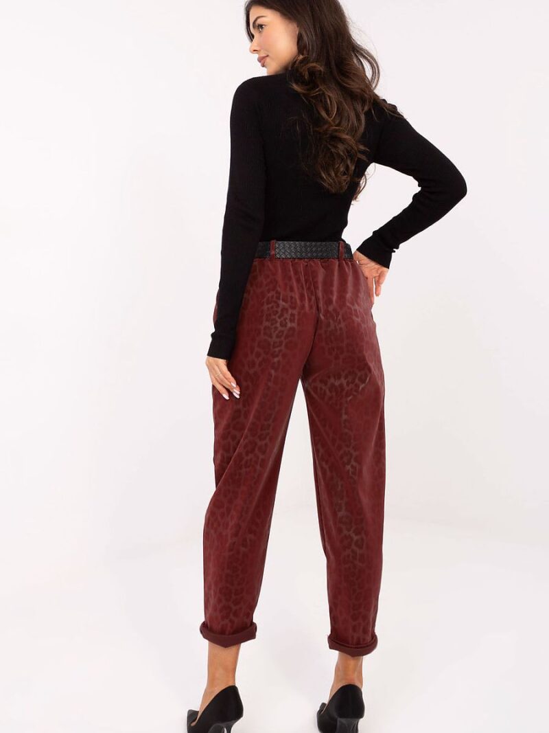 Pantalon en simili cuir pour femme dans un style décontracté, idéal pour tous les jours. Fabriqué à partir d’un mélange de viscose, nylon et élasthanne, il allie confort, élasticité et durabilité. Avec sa taille haute, ses jambes fuselées et sa taille élastique, il assure confort et une coupe ajustée élégante, tandis que la ceinture souligne la taille. Les poches latérales et le motif léopard à la mode confèrent aux pantalons un caractère distinctif et moderne.