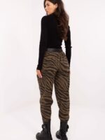 Pantalons pour femmes en tissu de style décontracté, parfaits pour tous les jours. Fabriqués à partir d’un mélange de viscose, de polyester et d’élasthanne, ils allient confort, élasticité et durabilité. Avec une taille haute, des jambes fuselées et une ceinture élastique, ils assurent un confort de port, tandis que la ceinture boutonnée souligne la taille. Les poches latérales et le motif zébré à travers tout le tissu donnent aux pantalons un caractère moderne et distinctif.