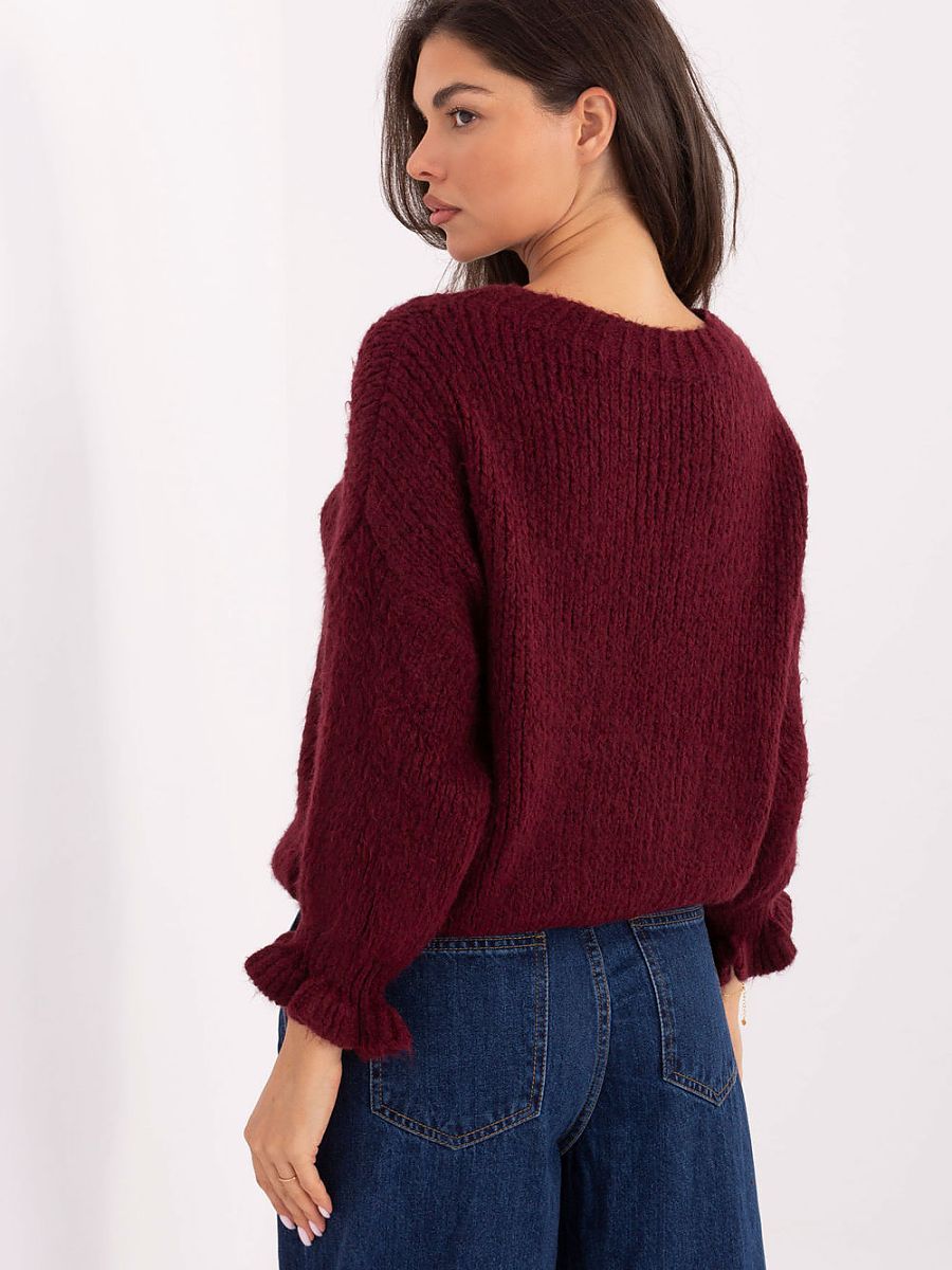 Un pull élégant pour femme au caractère décontracté, parfait pour tous les jours et pour le travail. Fabriqué à partir d’un mélange de haute qualité d’acrylique, de laine, de viscose et de polyamide, il est doux, agréable au toucher et confortable à porter. Son motif lisse lui donne une élégance simple, et ses manches 3/4 ornées d’une subtile volant lui ajoutent un charme féminin. Sa longueur standard le rend parfait pour être assorti aussi bien avec un jean qu’avec des pantalons ou des jupes plus formels. C’est une proposition idéale pour les femmes qui apprécient le style, le confort et l’élégance intemporelle.