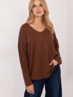 Un élégant pull pour femme avec un fil brillant, parfait pour tous les jours et pour le travail. Fabriqué à partir d’un mélange de viscose et d’élasthanne, il offre confort et souplesse tout en ayant un léger brillant, ajoutant de l’élégance à la tenue. La texture variée du tissu fait ressortir un motif subtil, soulignant l’élégance et le caractère moderne du pull. Il a une longueur standard et des manches longues, ce qui le rend parfait pour toutes les tenues. Le décolleté en V ajoute une touche de féminité et affine la silhouette, créant un look classique et élégant.