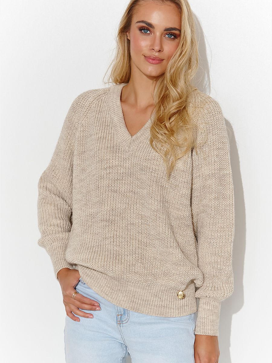 Le pull-over classique pour femme est une pièce fiable de la garde-robe qui convient à de nombreuses situations. L’encolure en cœur lui confère subtilité et élégance, tout en restant suffisamment modeste pour être porté en diverses occasions. La coupe ample du pull assure confort et liberté de mouvement, ce qui en fait un excellent choix pour aller au travail, à l’université ou pour sortir avec des amis. Le tissage uniforme ajoute une touche classique, ce qui le rend polyvalent et facile à associer à d’autres pièces de votre garde-robe. Les ornements dorés sont un détail élégant qui souligne son caractère unique. Choisissez la couleur qui vous convient et exprimez votre personnalité !