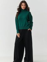 Misez sur l’élégance et le confort dans leur meilleure version. Ce pull à col roulé pour femme est un incontournable dans toute garde-robe. Fabriqué à partir d’un tricot de haute qualité composé de 51% de viscose, 30% de PBT et 19% de nylon, il séduit par sa douceur, son élasticité et sa durabilité. Grâce à l’avantage de la viscose, le pull est incroyablement agréable au toucher, permet à la peau de respirer et s’ajuste magnifiquement à la silhouette. L’ajout de fibres synthétiques fait que le matériau ne se déforme pas, conserve sa forme même après de nombreux lavages et ne peluche pas, garantissant la longévité du produit. Pourquoi choisir ce modèle ? Le col roulé classique protège du froid et ajoute de l’élégance, parfait pour l’automne et l’hiver. Sa coupe oversize avec des épaules légèrement tombantes assure une liberté de mouvement et un confort de port. Les poignets élastiques et le bas du pull donnent à l’ensemble un caractère tendance. Son design polyvalent conviendra aussi bien aux tenues décontractées du quotidien qu’aux ensembles plus élégants pour le travail ou les rencontres. Il se marie parfaitement avec un jean classique, un pantalon en tissu élégant ou une jupe plissée. Vous pouvez le porter aussi bien avec des bottines qu’avec des baskets sportives, il aura toujours du style. Si vous recherchez un pull qui allie confort, qualité et style intemporel, ce modèle à col roulé sera votre pièce préférée dans votre garde-robe pendant de nombreuses saisons.