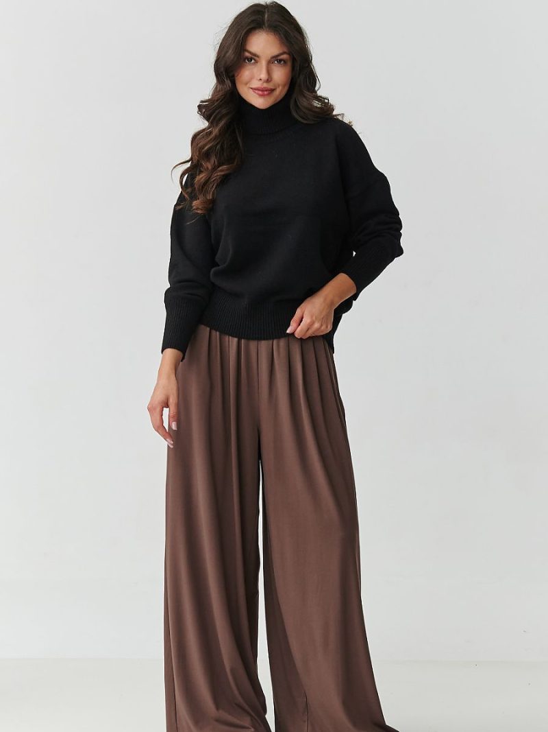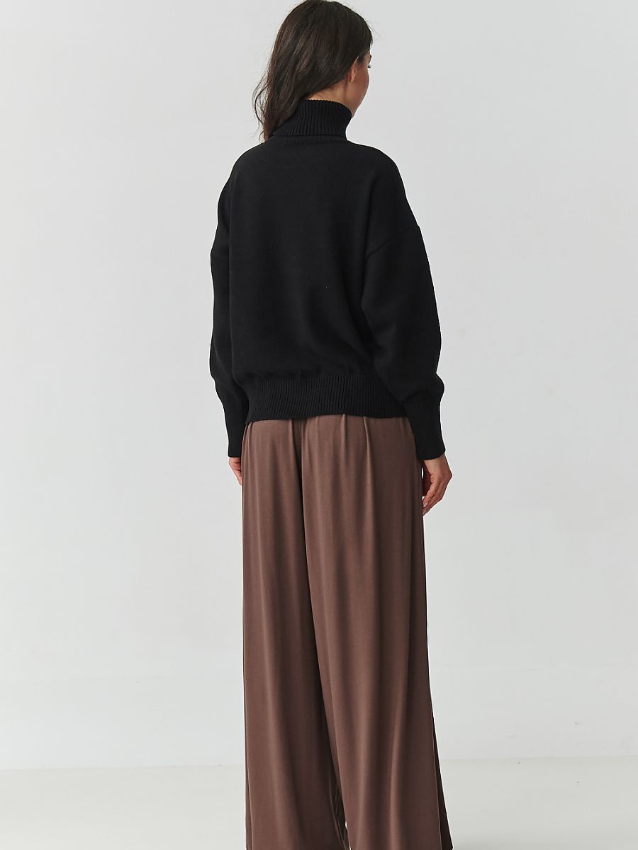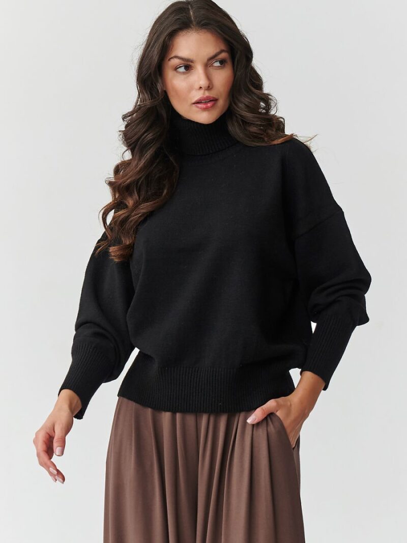 Misez sur l’élégance et le confort dans leur meilleure version. Ce pull pour femme avec un col roulé est un incontournable dans toute garde-robe. Fabriqué à partir d’un tricot de haute qualité avec une composition unique de 51% viscose, 30% PBT et 19% nylon, il séduit par sa douceur, son élasticité et sa durabilité. Grâce à la viscose, le pull est extrêmement agréable au toucher, permet à la peau de respirer et s’ajuste magnifiquement à la silhouette. L’ajout de fibres synthétiques fait que le tissu ne se déforme pas, conserve sa forme même après de nombreux lavages et ne peluche pas, garantissant la longévité du produit. Pourquoi choisir ce modèle? Le col roulé classique protège du froid et ajoute de l’élégance, idéal pour l’automne et l’hiver. La coupe oversize avec une ligne d’épaule légèrement abaissée assure une liberté de mouvement et un confort de port. Les poignets élastiques et l’ourlet du pull ajoutent un caractère tendance à l’ensemble. Un design polyvalent qui se marie parfaitement aussi bien avec des tenues décontractées au quotidien qu’avec des ensembles plus élégants pour le travail ou les rencontres. Il se marie parfaitement avec un jean classique, un pantalon élégant en tissu ou une jupe plissée. Vous pouvez le porter aussi bien avec des bottines que des baskets sportives, il est toujours élégant. Si vous recherchez un pull qui allie confort, qualité et style intemporel, ce modèle avec col roulé sera votre élément préféré de la garde-robe pendant de nombreuses saisons.