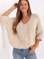 Pull femme de style oversize, fabriqué à partir d’un mélange de polyacrylique, d’alpaga, de polyamide et de viscose, qui garantit douceur, chaleur et confort au quotidien. Le modèle a une longueur standard et une coupe ample, ce qui le rend parfait pour un style décontracté. La texture variée du matériau lui confère un caractère unique, et l’encolure en V affinée la silhouette de manière subtile. Les manches 3/4 apportent légèreté et liberté, et l’absence de fermeture le rend extrêmement pratique et facile à styliser pour les occasions quotidiennes.