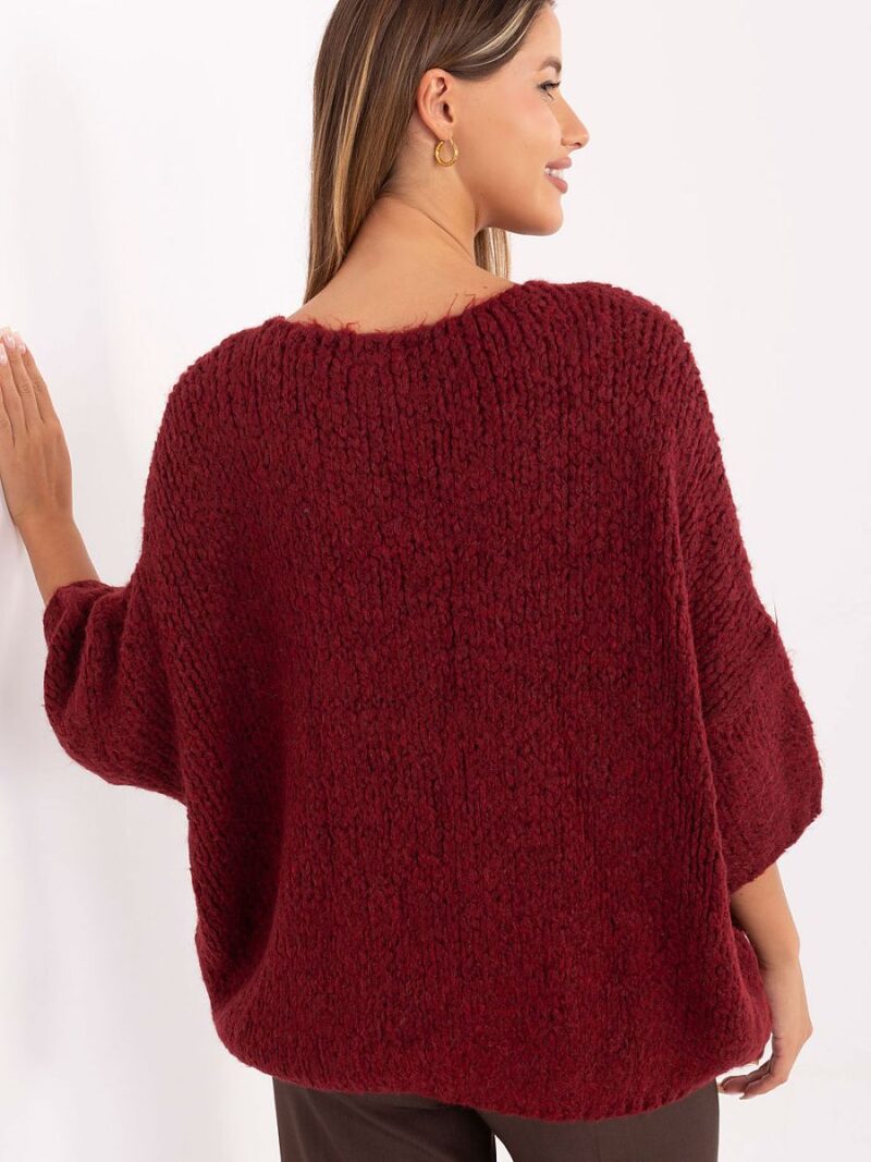 Pull pour femme de style oversize, fabriqué à partir d’un mélange de polyacrylique, d’alpaga, de polyamide et de viscose, qui garantit douceur, chaleur et confort au quotidien. Le modèle a une longueur standard et une coupe ample, ce qui le rend parfait pour un style décontracté. La texture variée du matériau lui donne un caractère unique, et le col en V affine subtilement la silhouette. Les manches 3/4 apportent légèreté et liberté, et l’absence de fermeture le rend extrêmement pratique et facile à styliser pour les occasions de tous les jours.