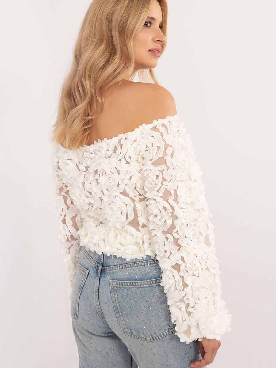 Une élégante blouse courte, parfaite pour les fêtes et les occasions spéciales, qui se distingue par son style chic. Le tissu délicatement texturé de la blouse apporte une touche sophistiquée et une profondeur subtile. Fabriquée en polyester avec ajout d’élasthanne, elle s’ajuste parfaitement à la silhouette pour une tenue confortable. L’encolure à l’espagnole dévoile les épaules, donnant à la blouse un aspect féminin et léger, tandis que les manches longues ajoutent de l’élégance et créent un équilibre parfait dans la coupe.