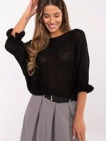 Un élégant pull pour femme est un excellent choix pour toute occasion, parfait pour tous les jours ainsi que pour le travail. Fabriqué en viscose de haute qualité avec une touche de fibre métallisée, il garantit un confort de port et un léger éclat élégant. Le motif lisse souligne le caractère classique du modèle, tandis que les manches 3/4 ornées de volants lui ajoutent un charme féminin. L’encolure ronde met joliment en valeur le cou, tandis que le nœud à l’arrière sous forme de nœud apporte une touche élégante et spectaculaire. Ce pull de longueur standard est un mélange de confort et d’élégance qui complétera n’importe quelle tenue.