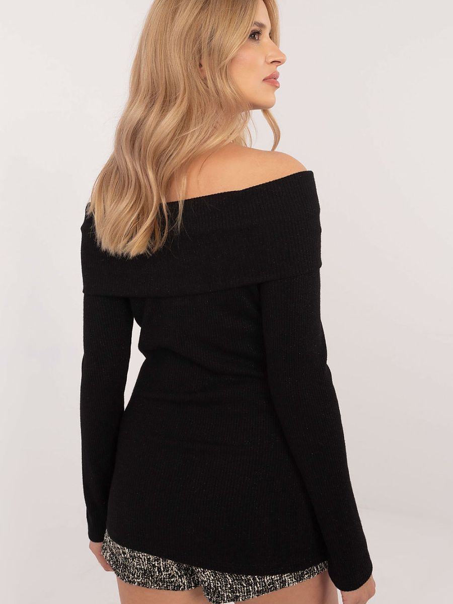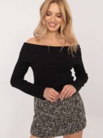 Un pull élégant pour femme, idéal à la fois pour tous les jours et pour le travail. Fabriqué à partir d’un mélange de viscose et d’élasthanne de haute qualité, il assure un confort de port et un ajustement parfait. Le pull a une texture rayée et variée du matériau, ce qui lui donne du caractère et une élégance subtile. Il a des manches longues et un décolleté de type espagnol, qui met en valeur les épaules de manière spectaculaire, ajoutant de la féminité à la tenue. De plus, le fil brillant sur la surface du tissu ajoute une touche de douceur et d’élégance à l’ensemble. C’est un choix parfait pour les femmes qui apprécient le confort et l’élégance dans leurs tenues quotidiennes.