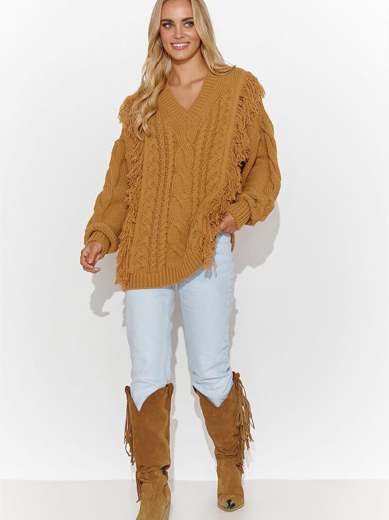 Ce pull élégant pour femme est un véritable bijou à porter au quotidien. Il présente une encolure en cœur qui allonge optiquement le cou. L’écossais frappant et les franges supplémentaires sont des éléments originaux et à la mode qui permettent à ce pull de se démarquer des autres. En outre, l’ajout de guirlandes dorées est un détail subtil mais luxueux qui souligne son caractère unique. L’armure unique dans le dos apporte équilibre et élégance à l’ensemble. Ce pull allie un design sophistiqué à un style classique. Que vous alliez à l’école, au travail ou que vous sortiez avec des amis, ce pull élégant sera toujours un bon choix. Vous pouvez le porter avec un jean et des bottes pour une tenue de tous les jours confortable et à la mode, ou l’associer à une robe et des talons aiguilles pour des occasions plus formelles.