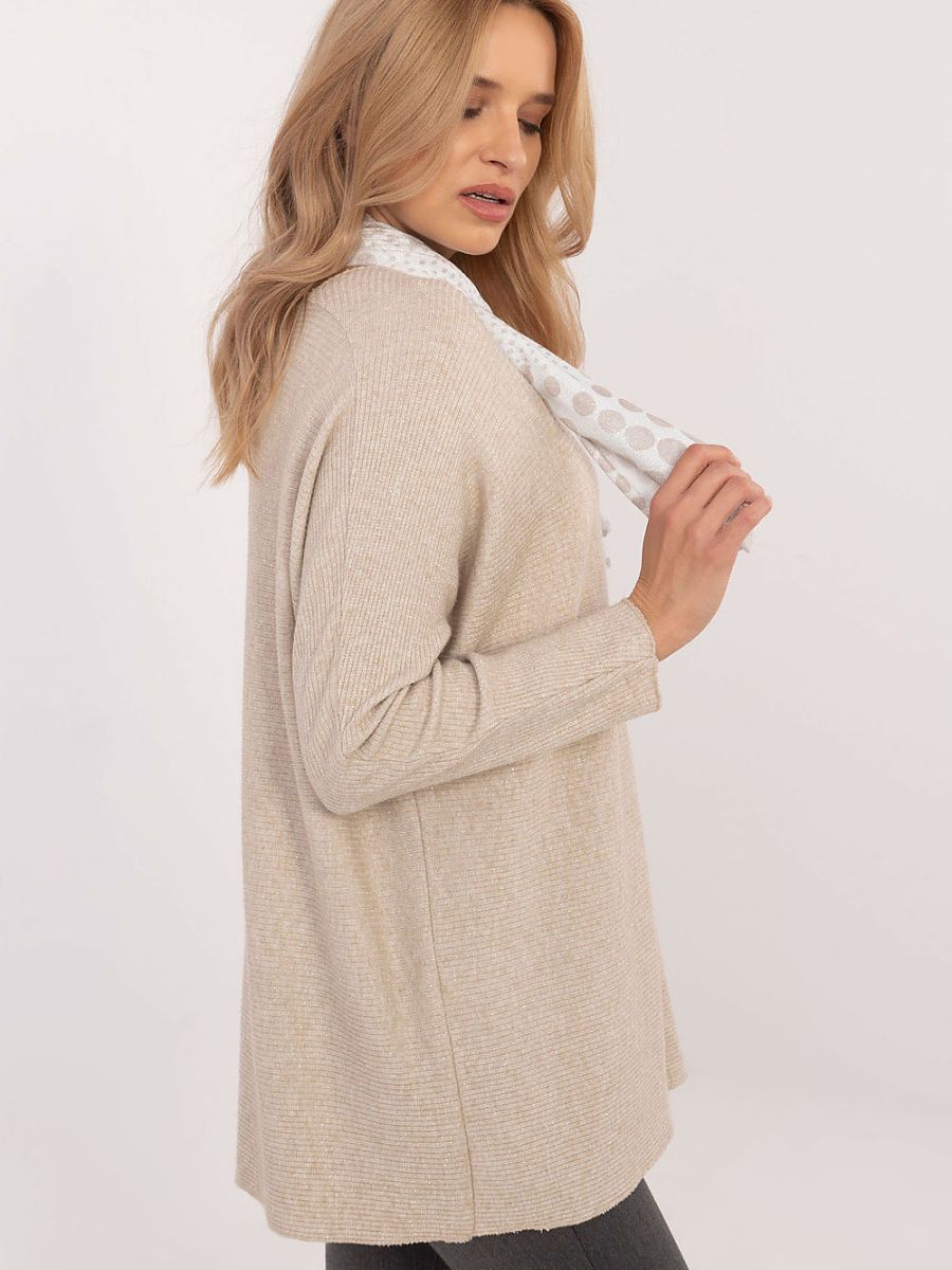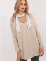 Un élégant pull-over pour femme avec un fil subtilement brillant, parfait pour le quotidien, le travail et les occasions spéciales. Le motif lisse souligne la nature polyvalente du pull, tandis que la texture côtelée lui confère un style moderne et une structure subtile. Fabriqué à partir d’un mélange de viscose et d’élasthanne, il offre une coupe confortable et légèrement ajustée à la silhouette. La longueur standard et l’encolure en cœur créent un look classique, tandis que l’absence de fermeture lui confère une élégance décontractée. Les manches longues sont parfaites pour les jours plus froids. Une écharpe est incluse pour compléter parfaitement le style.