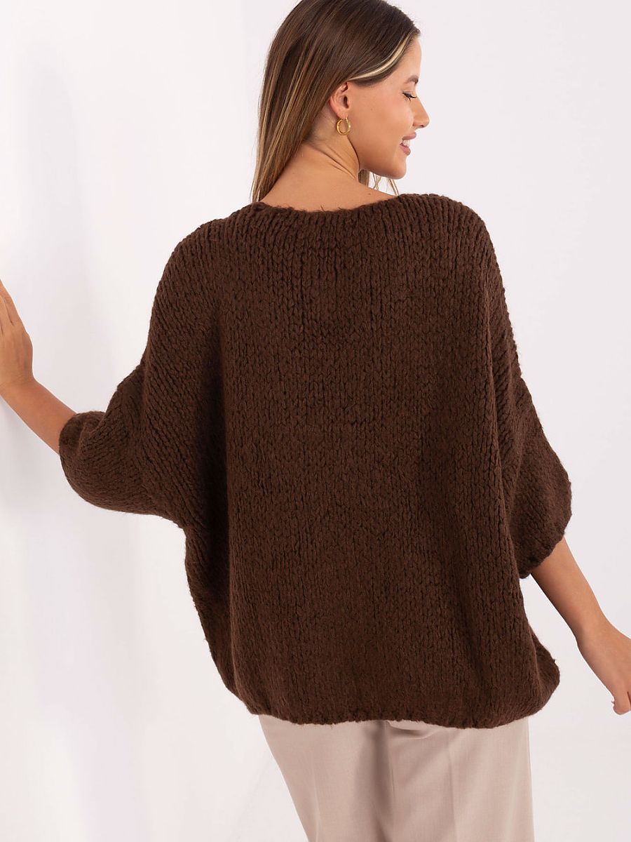 Pull femme de style oversize, fabriqué à partir d’un mélange de polyacrylique, d’alpaga, de polyamide et de viscose, qui garantit douceur, chaleur et confort au quotidien. Le modèle a une longueur standard et une coupe ample, ce qui le rend parfait pour un style décontracté. La texture variée du matériau lui donne un caractère unique, et l’encolure en V affine subtilement la silhouette. Les manches 3/4 apportent légèreté et liberté, et l’absence de fermeture le rend extrêmement pratique et facile à styliser pour les occasions quotidiennes.