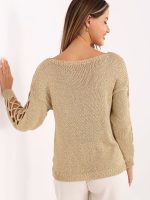 Un pull élégant pour femme de longueur standard, fabriqué en viscose de haute qualité avec l’ajout de fil métallisé qui brille subtilement et ajoute un caractère unique à l’ensemble. Le modèle se distingue par des découpes tendance sur les manches, ce qui donne à la forme classique une touche moderne. Le motif lisse rend le pull polyvalent et facile à combiner avec d’autres pièces de garde-robe. Les manches longues et l’encolure ronde lui confèrent une élégance intemporelle tout en assurant un confort de port. Il conviendra parfaitement à un usage quotidien ainsi qu’à des tenues de travail, soulignant l’élégance féminine de manière simple mais spectaculaire.