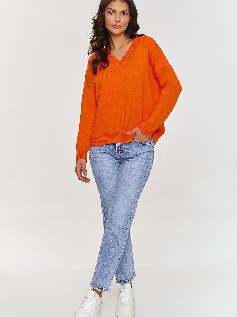 Ce pull basique est un choix parfait pour ceux qui recherchent des vêtements intemporels alliant élégance et confort. Fabriqué en viscose de haute qualité avec ajout de PBT, il assure non seulement un grand confort lors du port, mais aussi une durabilité exceptionnelle et une résistance aux plis. Le décolleté en V met subtilement en valeur le cou, donnant à l’ensemble un caractère léger et élégant, tandis que la coupe ample et les manches longues en font un élément confortable de la garde-robe. Les poignets et le bas côtelés ajoutent une touche moderne et garantissent que le pull conserve sa forme. La viscose est un matériau doux pour la peau, respirant et doux au toucher, idéal pour toutes les saisons. Quant au PBT (polybutylène téréphtalate), c’est une fibre synthétique qui augmente l’élasticité du matériau, améliorant sa résistance à l’étirement et aux plis. Grâce au PBT, le pull conserve sa forme plus longtemps et est facile à entretenir. En associant un décolleté V élégant à un matériau élastique, ce pull est très polyvalent. Vous pouvez le porter avec un jean, une jupe ou un pantalon élégant, créant des tenues décontractées ou plus formelles.