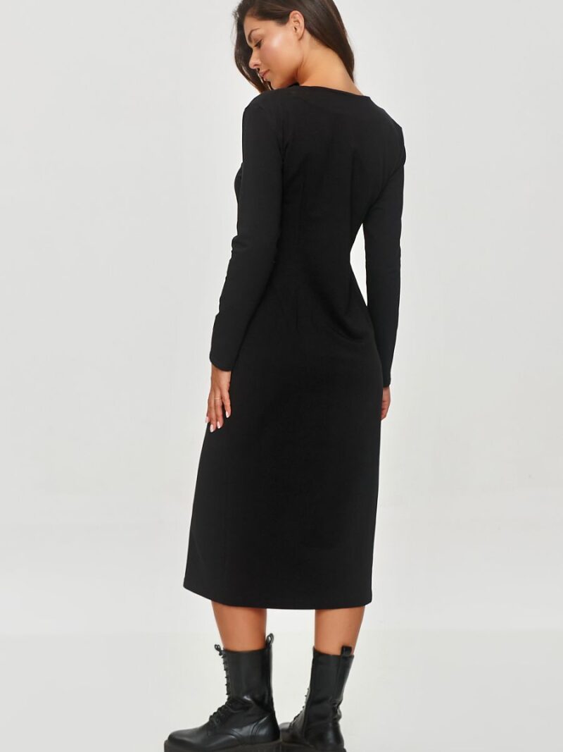 La robe en molleton est une proposition élégante mais simple pour tous les jours, combinant minimalisme avec une touche de style. Le modèle a une coupe simple et moulante qui met en valeur la silhouette tout en restant confortable. La longueur de la robe atteint le milieu du mollet, ce qui lui confère un caractère classique. Le tissu doux et élastique assure un confort tout au long de la journée. La robe a des manches longues parfaites pour les jours plus frais. L’encolure en forme de V allonge visuellement le cou et ajoute de l’élégance. À l’avant de la robe se trouve une fente subtile en bas, ce qui lui donne de la légèreté et permet une liberté de mouvement. Vous pouvez la porter avec des baskets blanches pour un look sportif mais élégant, ou avec des bottines ou des ballerines pour un effet plus formel. Cette robe est le choix idéal pour les sorties quotidiennes, les rencontres avec des amis ou pour le travail. Grâce à sa coupe simple et à ses détails élégants, elle peut être facilement stylisée pour différentes occasions.