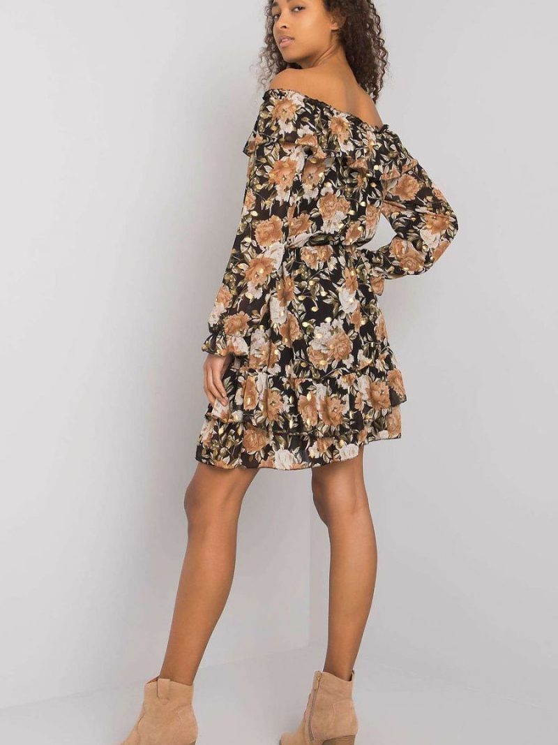 Robe à manches longues et décolleté de type espagnol. La robe est doublée, le bas est décoré de froufrous.